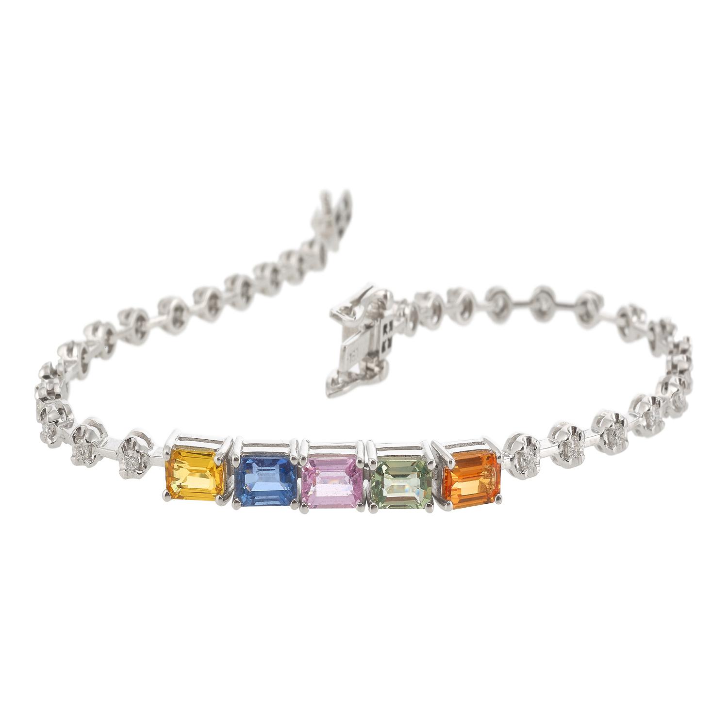 Tennis bracelet with vibrant sapphires and diamonds, a different approach to a classic line of bracelet.