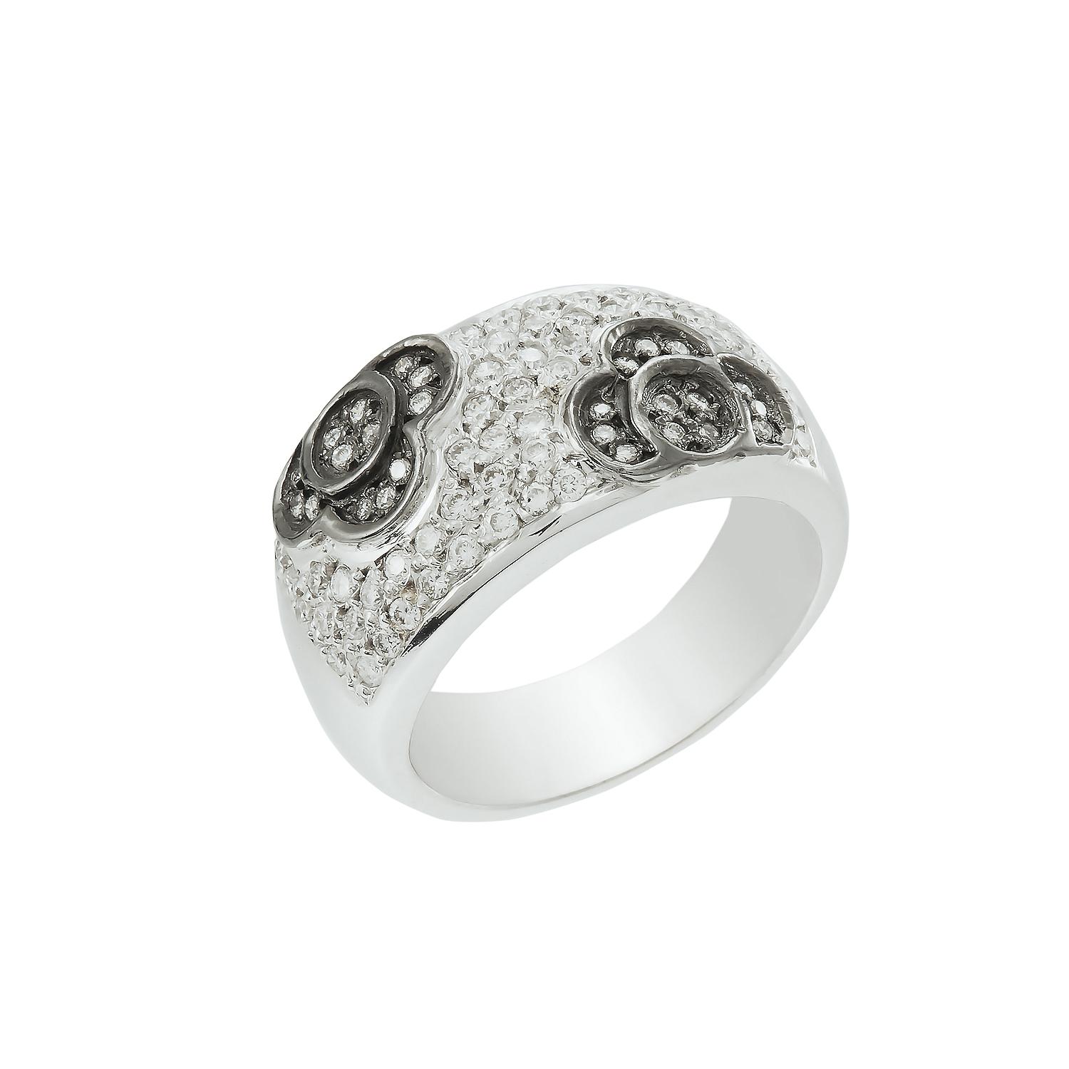 Pavé Ring with diamonds in the shape of flowers on black rodination.