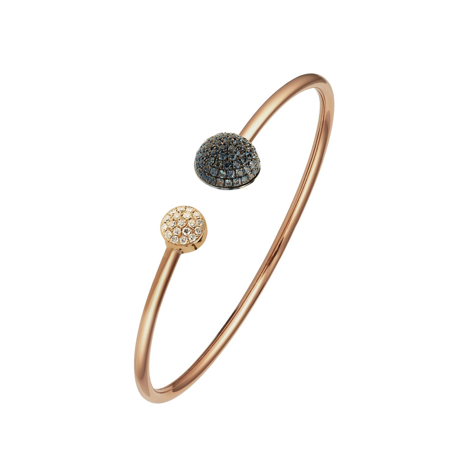 Bangle bracelet rose gold 18 carat with brilliant cut diamonds 0,18 carat and saphires 1,49 carats.