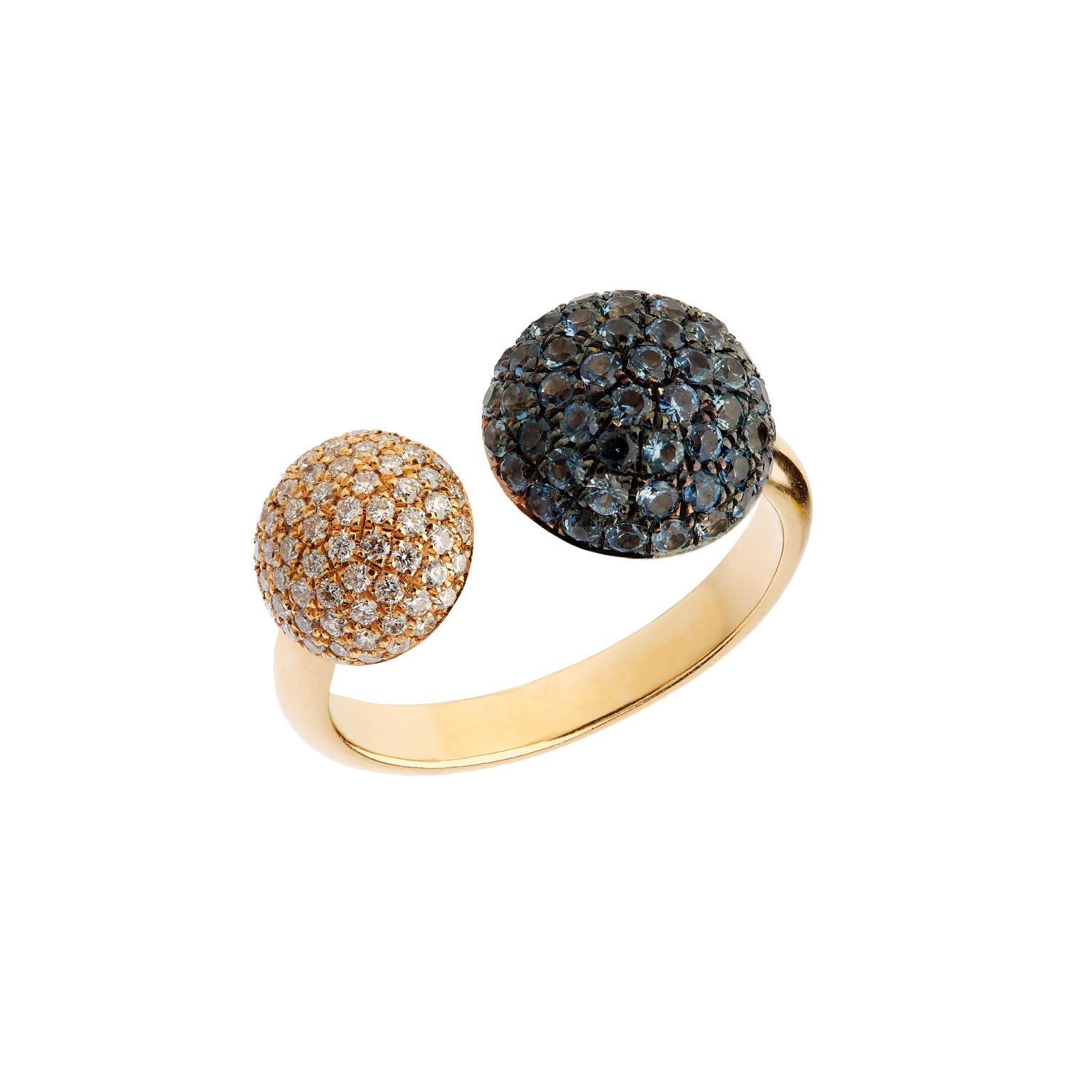 Ring rose gold 18 carat with brilliant cut diamonds 0,38 carat and blue saphires 1,08 carat.