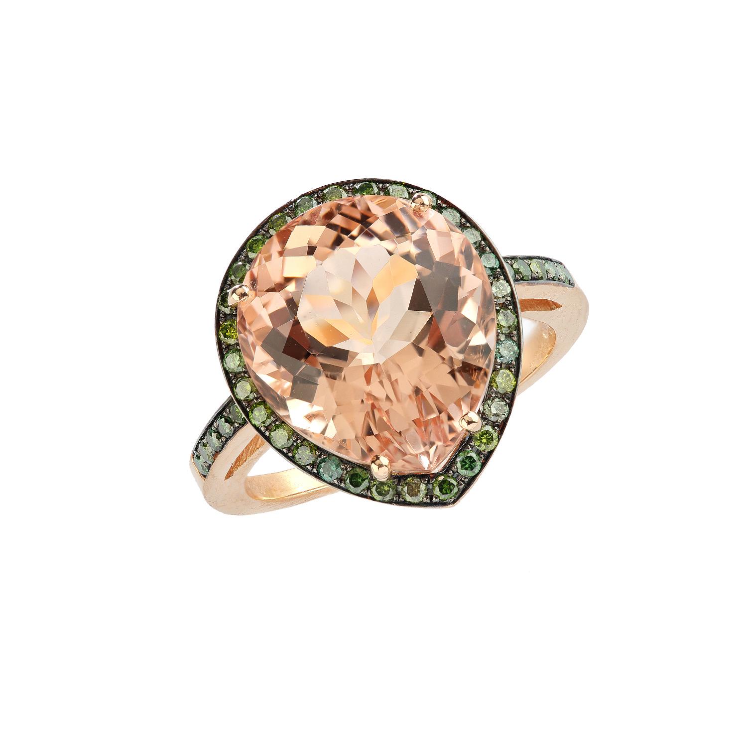 Ring rose gold 18 carat with a pear shape morganite 11,05