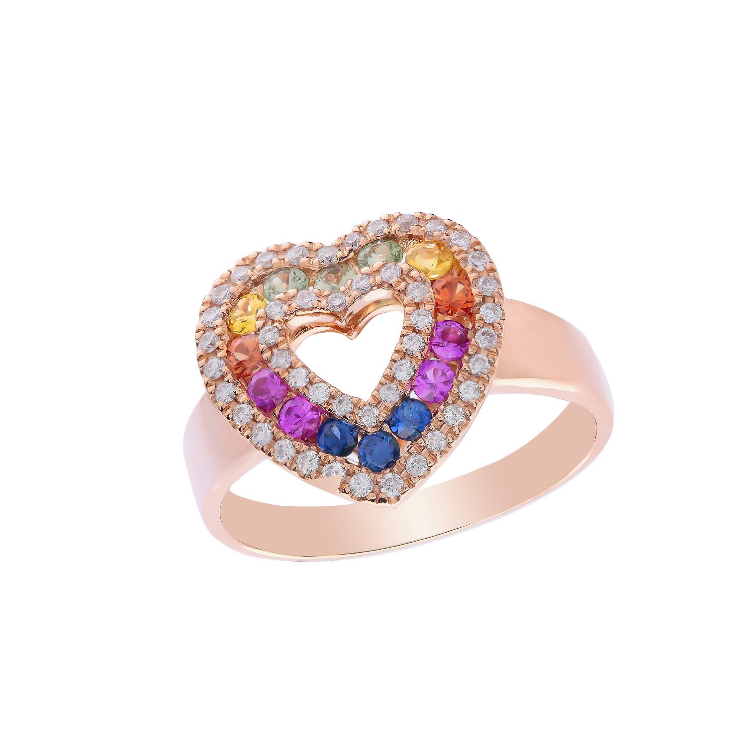 18-carat rose gold ring with full cut 0,20-carat diamonds and 0,58-carat multi-colour sapphires.