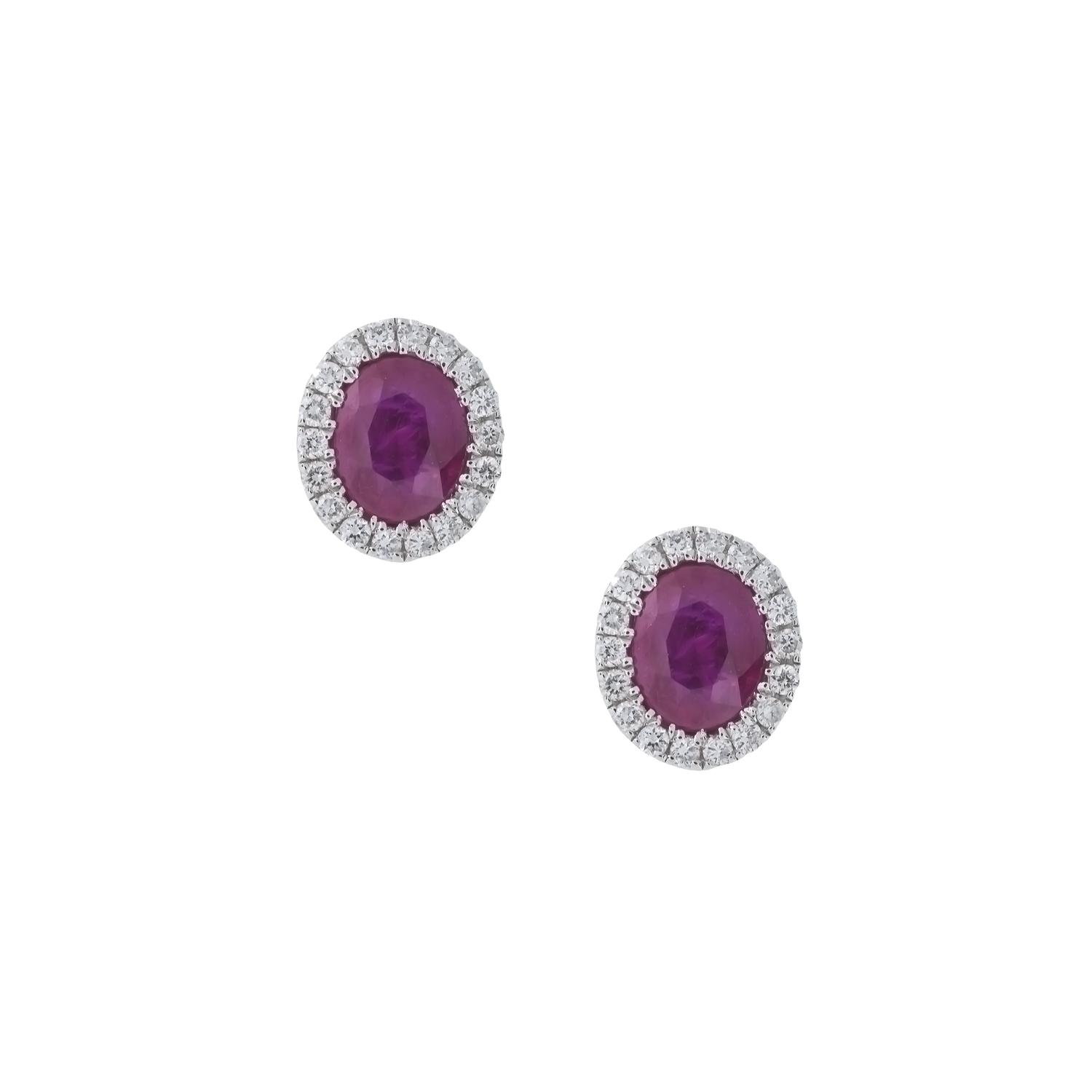 Earrings white gold 18 carat with brilliant cut diamonds and oval cut rubbies.