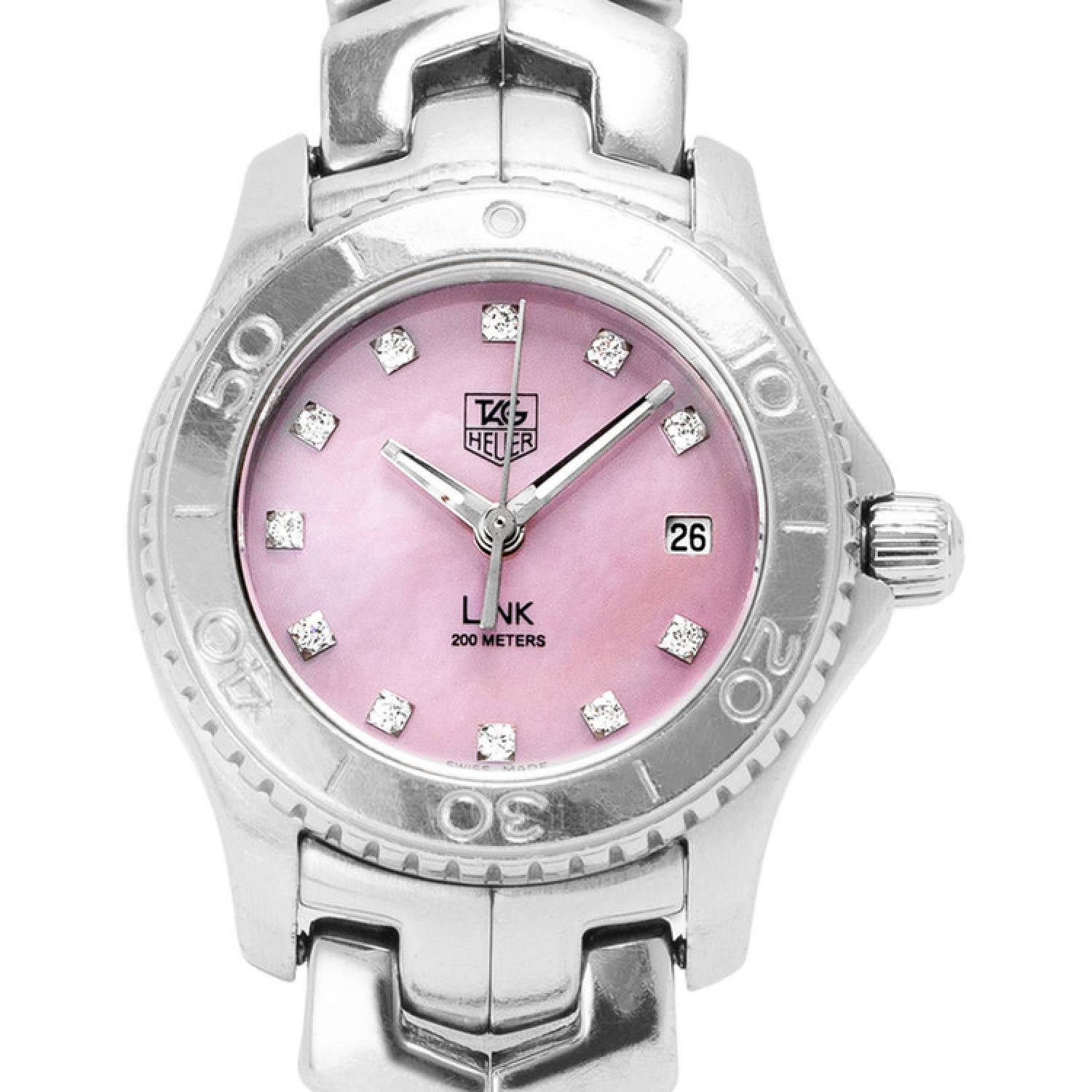 A stunning, very feminine, diamond (0.116 CT) quartz edition of the Link Lady with dial colour pink. The shimmering 25mm case in fine-brushed and polished stainless steel, matched with a polished steel bezel and the iconic S-shape bracelet.