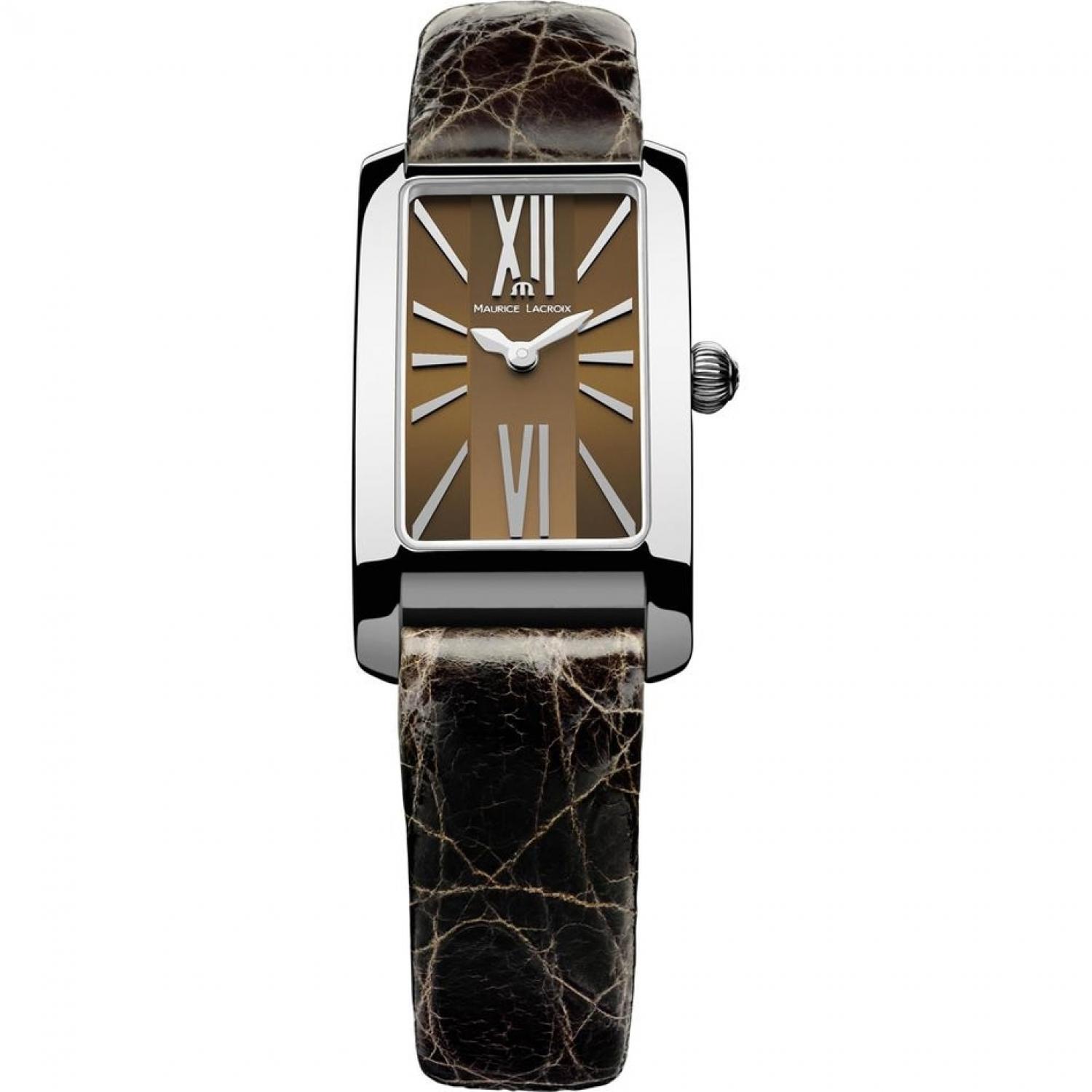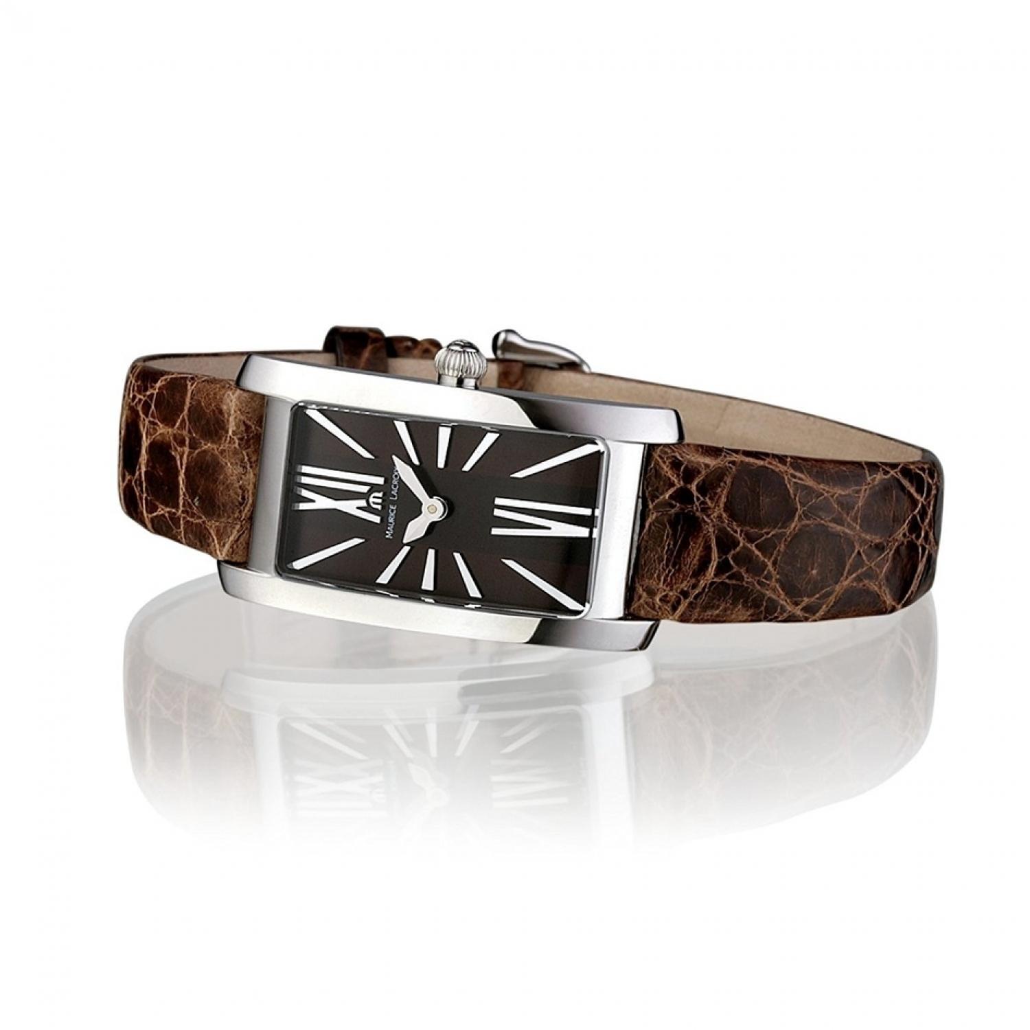 The Maurice Lacroix Fiaba watch is a very elegant women's timepiece, which is a kind of tribute to demanding, full of class women for whom high-quality workmanship is a priority. A characteristic element of this model is a rectangular case, which is made of surgical steel, mainly due to its anti-allergic properties ensuring the safety of even the most delicate skin. It is attached to a brown leather strap, which will fit perfectly into the wrist thanks to the buckle fastening and a multitude of holes. The implementation of these elements allows you to feel what true comfort of use means.