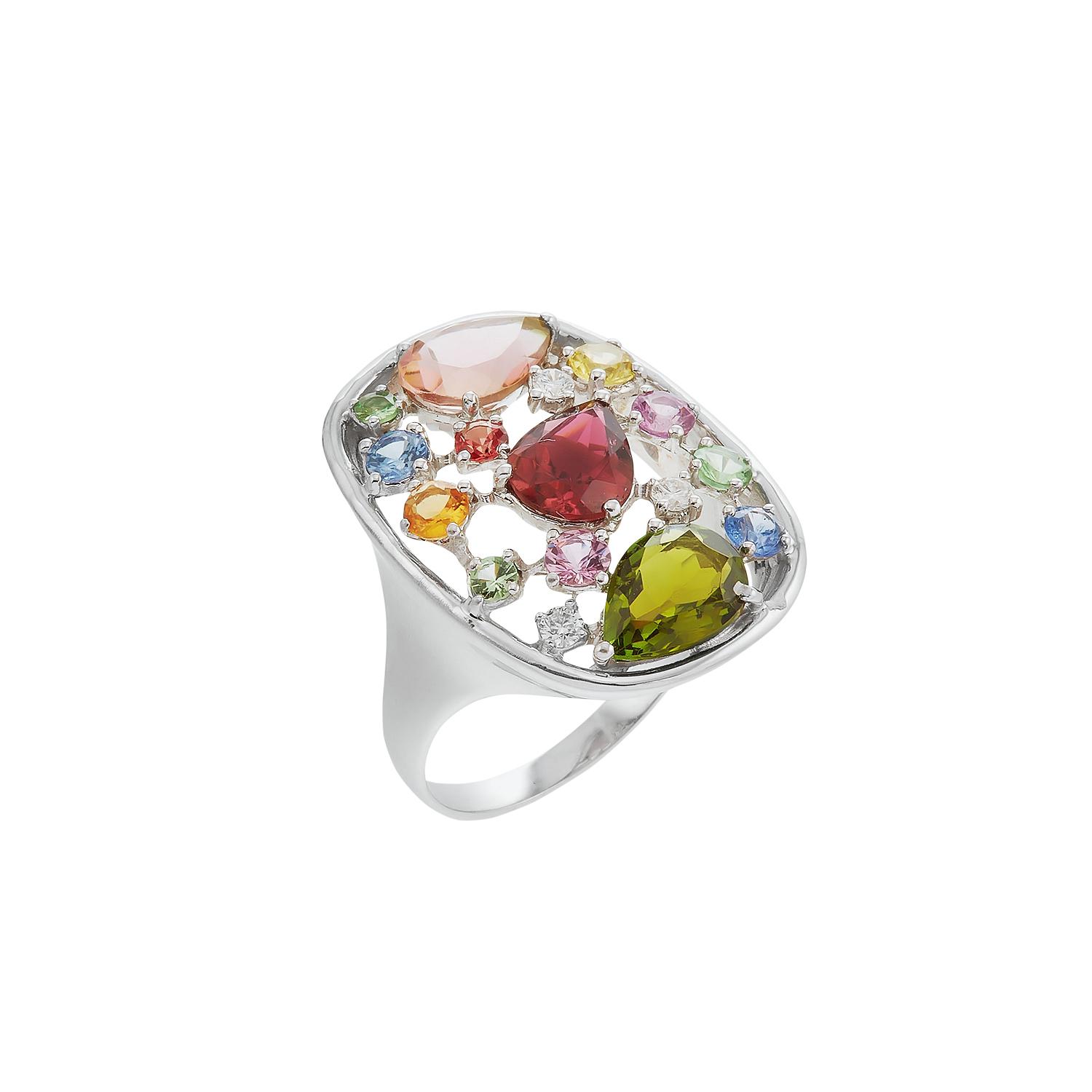 Tropical Storm Ring with colorful tourmalines, citrin, topaz and diamonds.