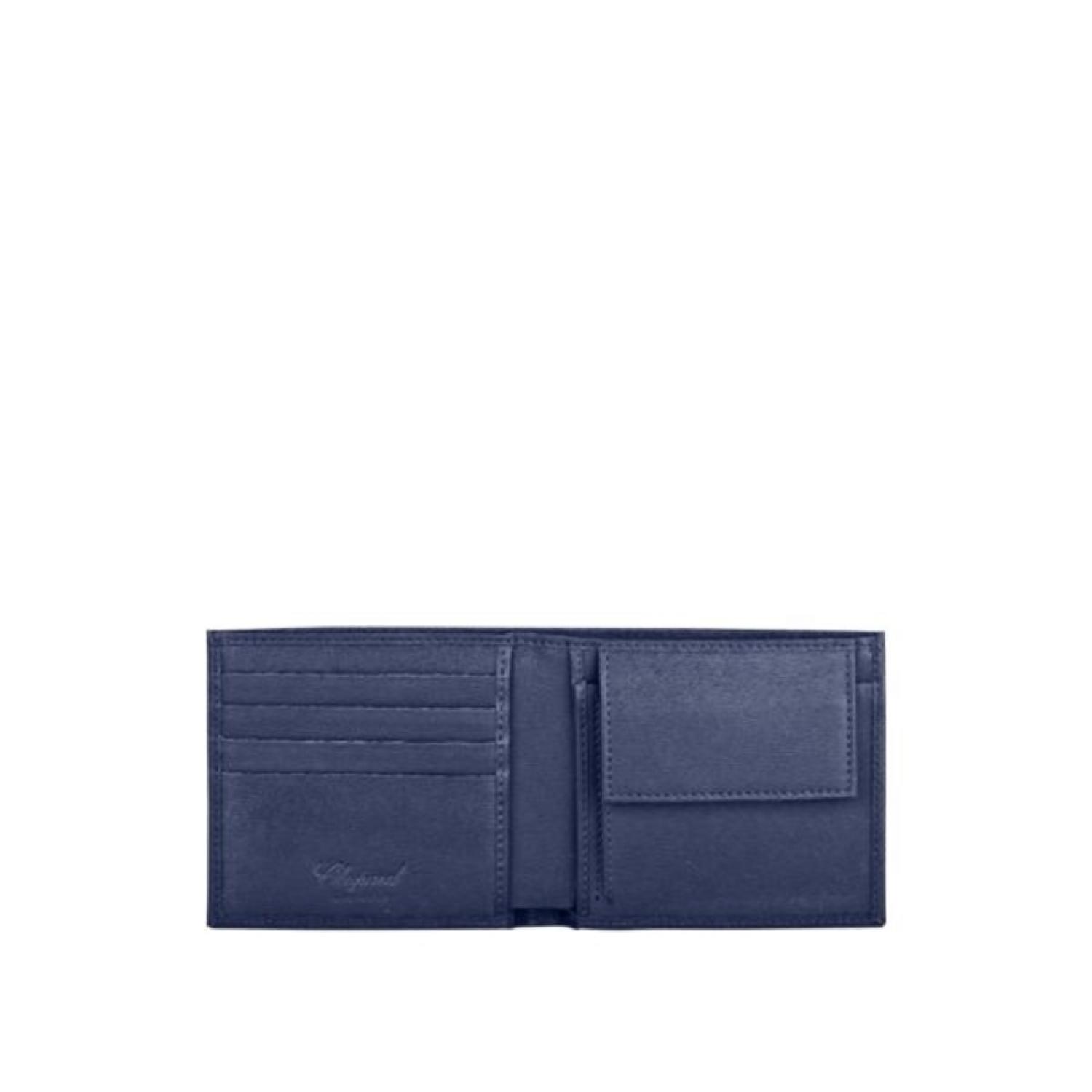 Extremely elegant and carefully crafted in grained calfskin, the small Classic change purse features an ultra-convenient pocket for coins. The Chopard logo in silver-toned metal contrasts beautifully with the blue leather for elegant style.