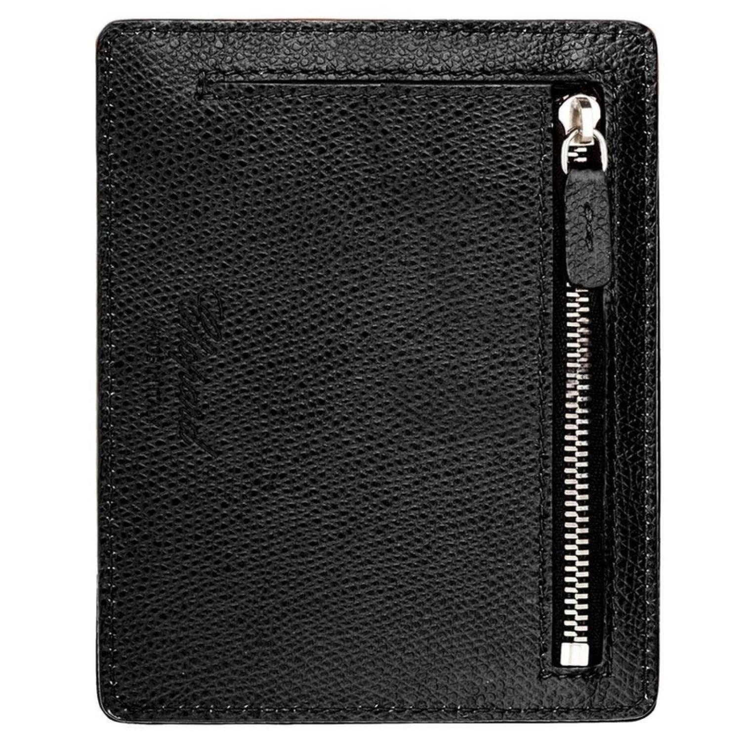 This extremely practical card holder comes with 1 zipped pocket, lending itself to myriad uses. The classic and subdued black calfskin contrasts with the palladium-finished zipper to exude subtle sophistication.