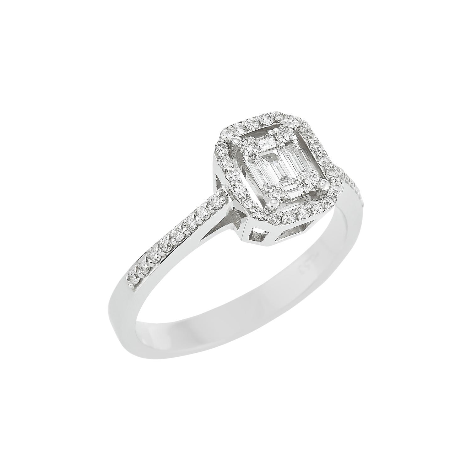 Δαχτυλίδι 18 καράτια με μπαγκέτες 0,25 στο κέντρο και μπριγιάν 0,20ct στο πλάι χρώμα F/G και καθαρότητα VS