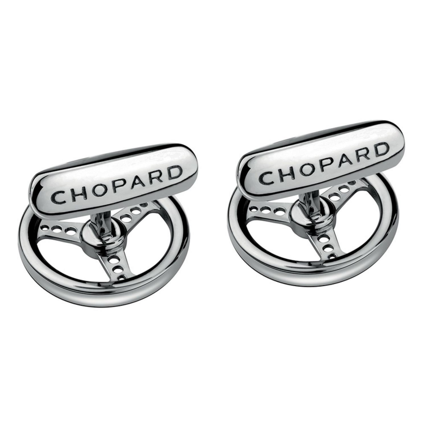 Inspired by the steering wheel, the openwork design of these Racing cufflinks in stainless steel are an elegant tribute to cars and racing. They are a subtle celebration of the ultimate passion, that of speed, automobiles and freedom. As a final luxury touch, the “Chopard” logo is engraved on the back.