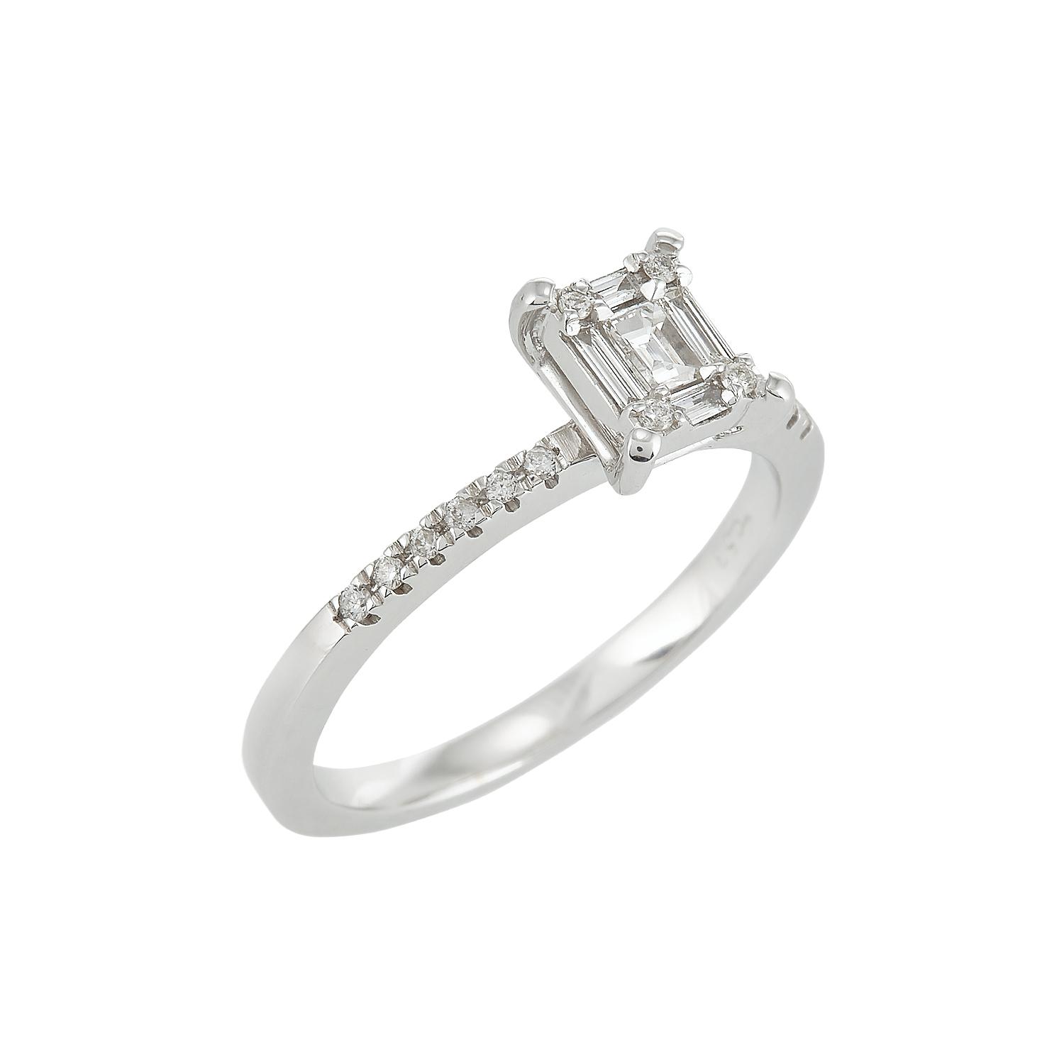 Δαχτυλίδι μονόπετρο 18 καράτια μπαγκέτες στο κέντρο 0,21ct και μπριγιάν στο πλάι 0,10ct.