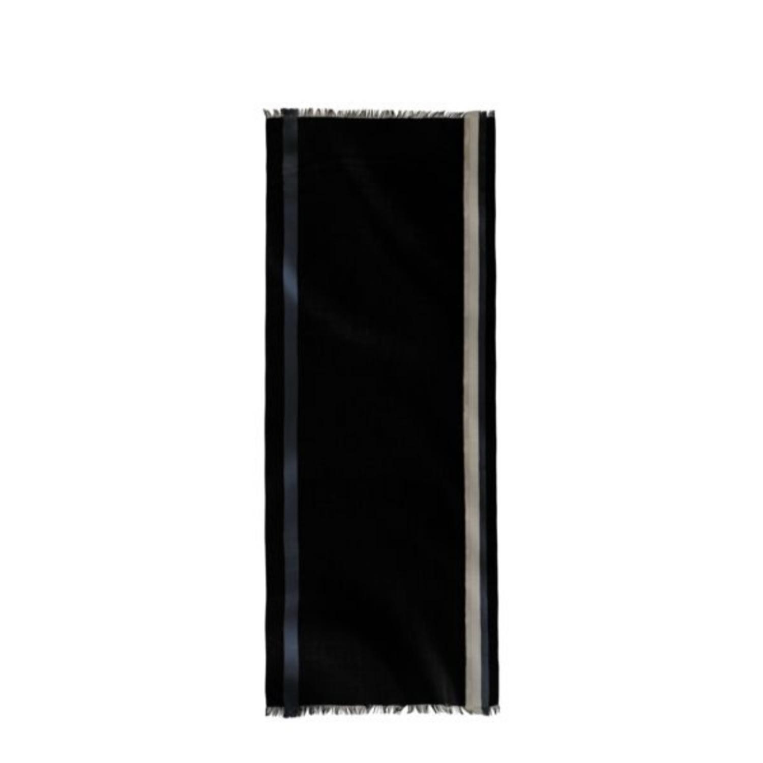 In a precious blend of silk, wool and cashmere, the black Classic Racing stole is distinctive for its sport chic elegance and incomparable softness. Like the markings of a racetrack, two peacock blue lines stand out along the outlines, indicating the course to follow for a gentleman driver with a refined, understated style.