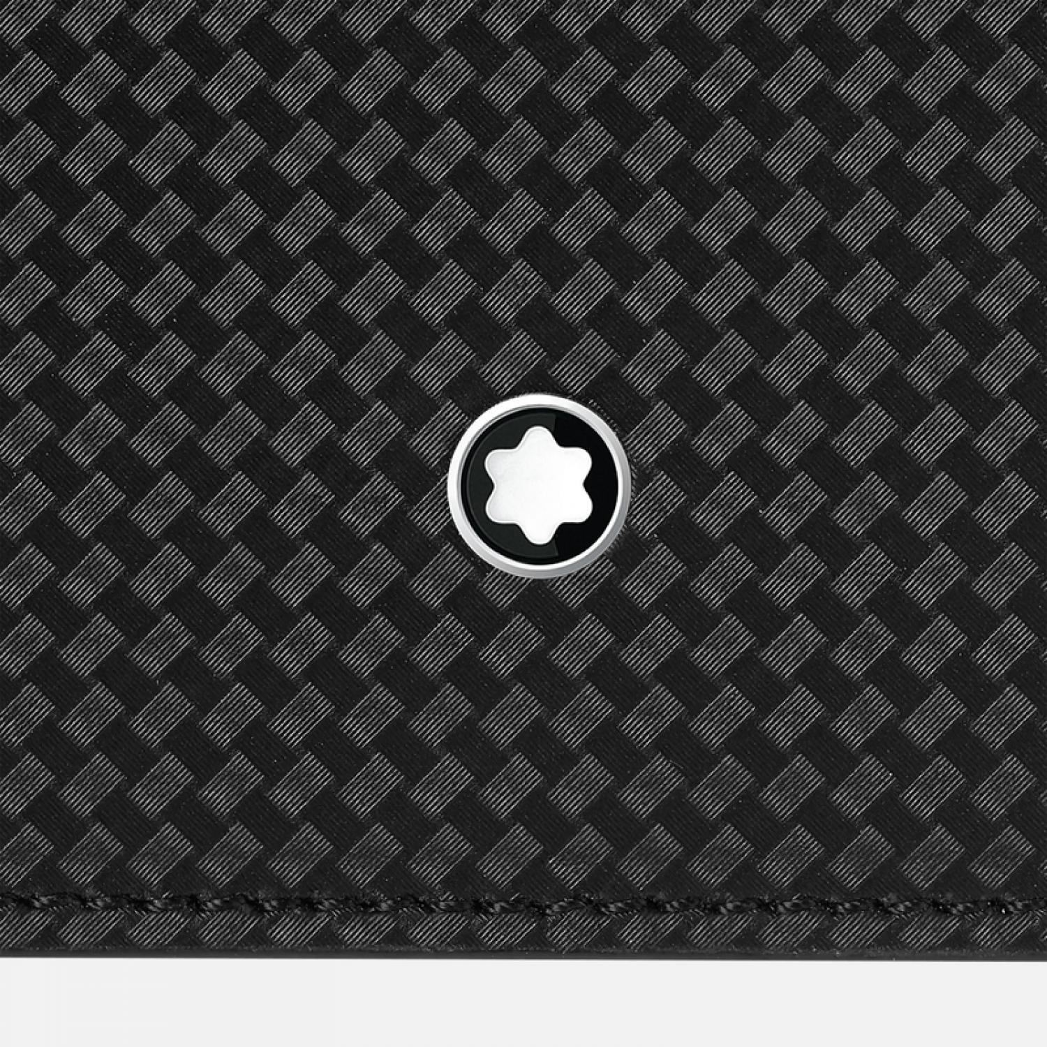 With its bold black colour, plain leather inside and leather with carbon-fibre print motif outside, the wallet is the ideal companion for young urban explorers to keep their credits cards and cash. It features 8 slots for credit cards, 2 compartments for banknotes and 4 additional pockets. The Montblanc Shield technology, RFID blocking lining completes the style.