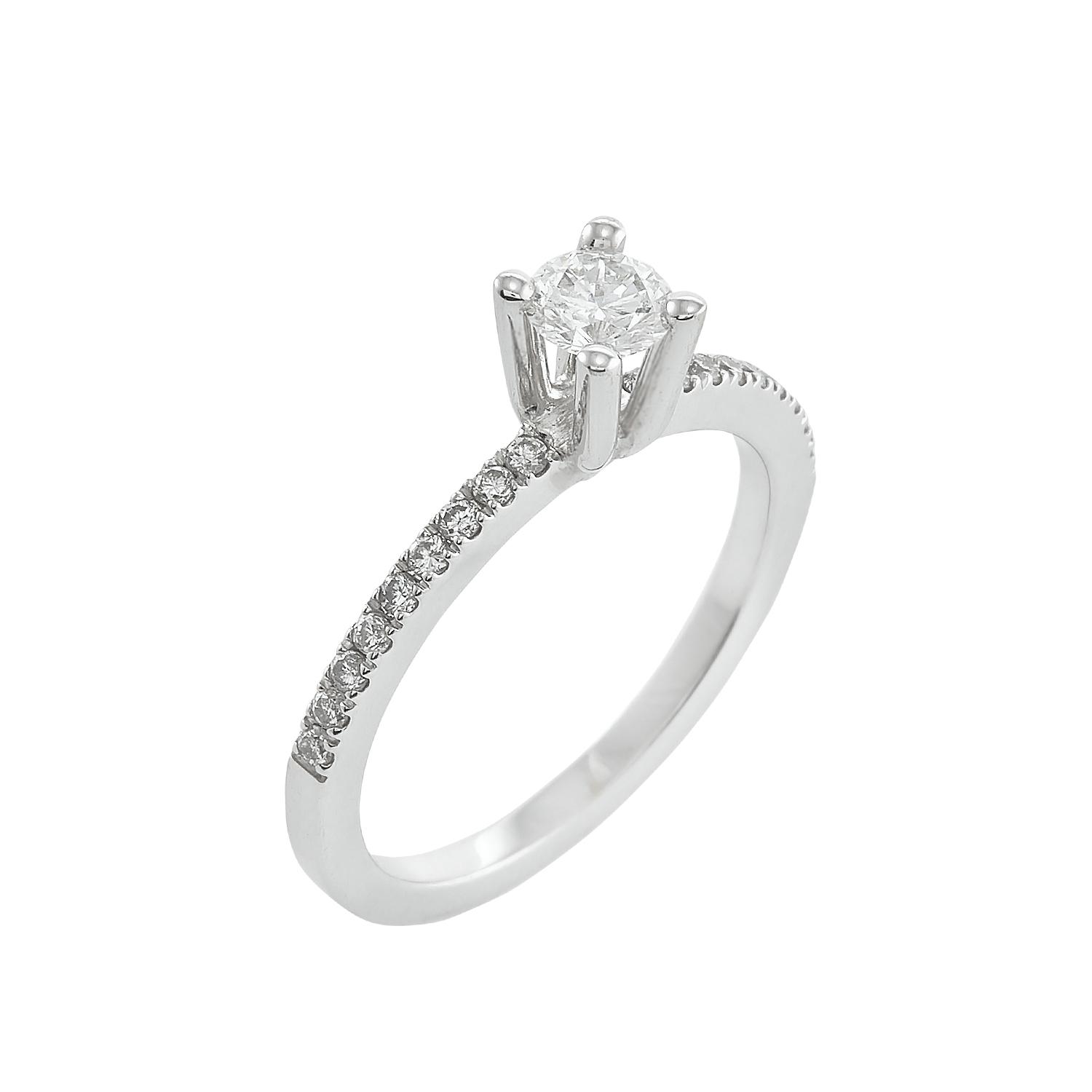 Δαχτυλίδι 18 καράτια μονόπετρο με μπριγιάν στο κεντρο0,30ct και 0,15ct στο πλάι.