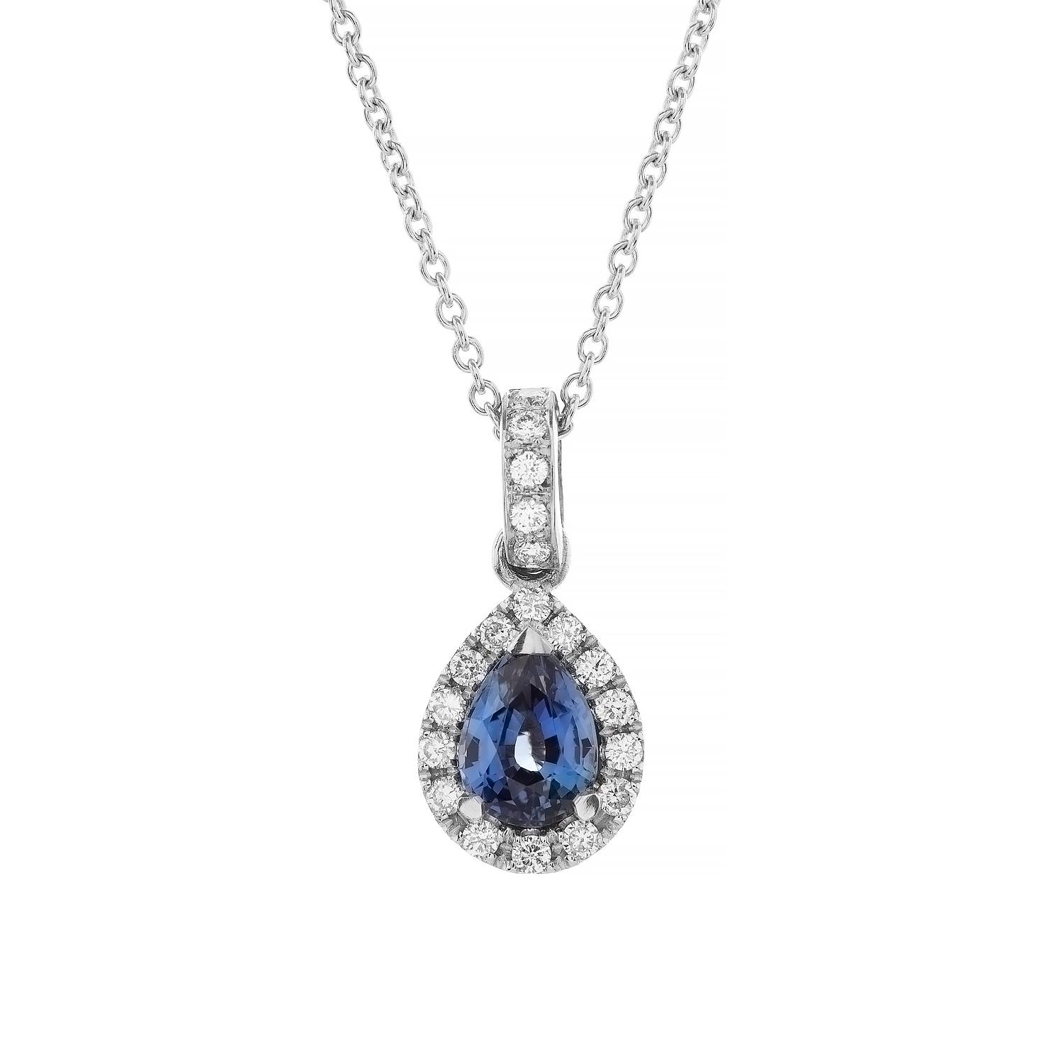 Necklace K18 white gold with a pear shape sapphire 0,94ct and brilliant cut diamonds total weight 0,2ct