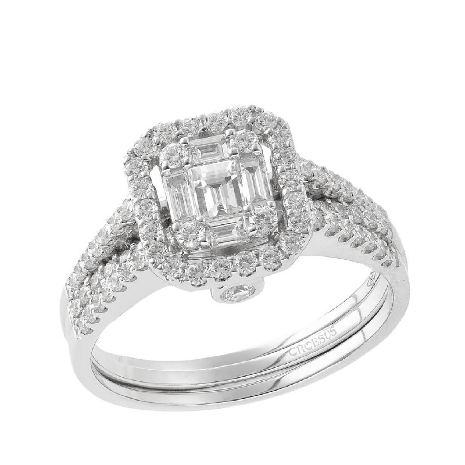White gold 18 carat ring with 1,09ct GVVS clarity brilliant and baguette cut diamonds
