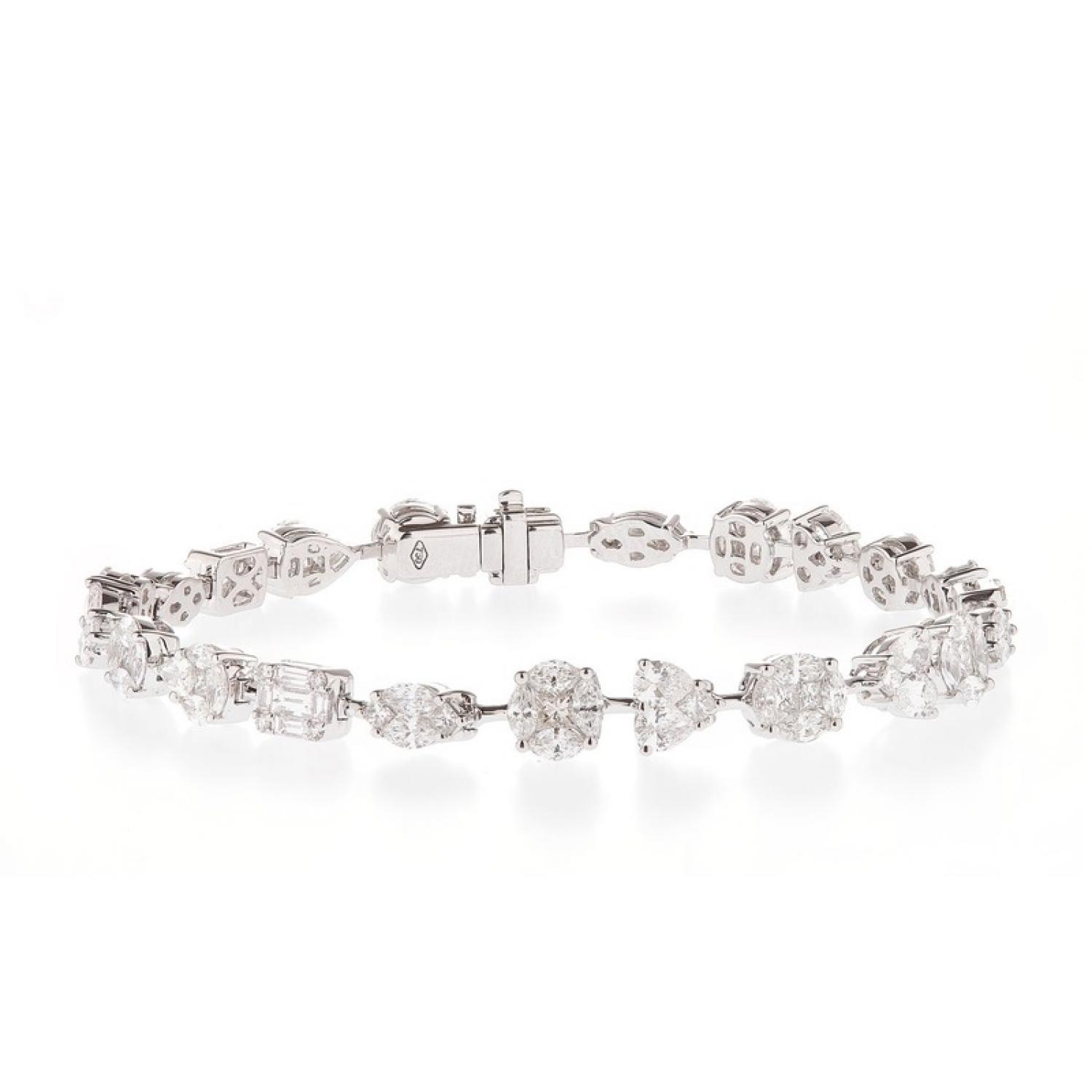 White gold 18 carat bracelet with marquise baguette, pear shape,princess and brilliant cut diamonds total weight 5,31 carat.