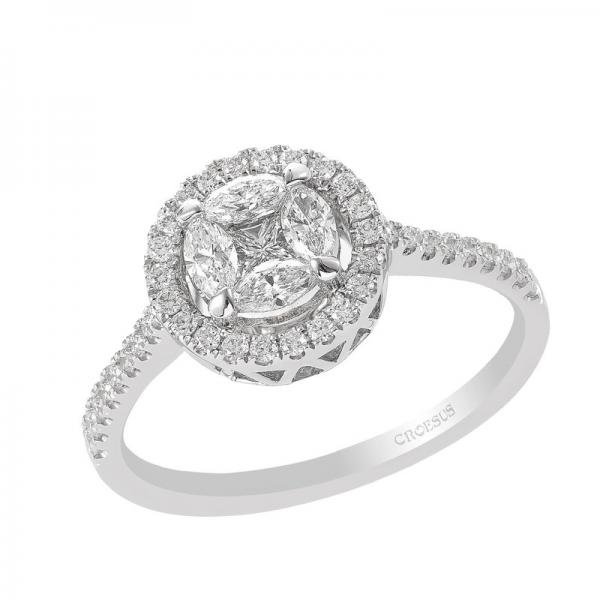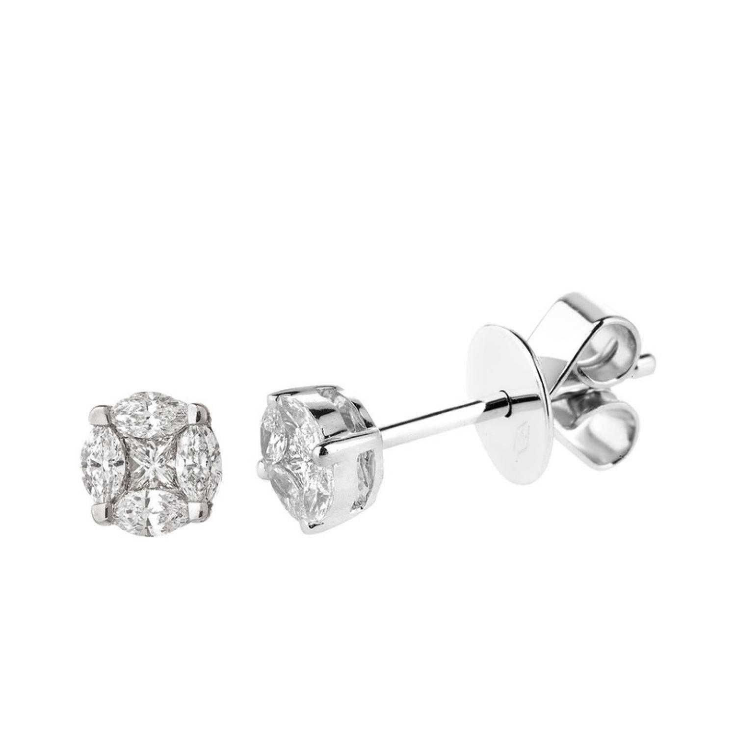 White gold 18 carat earrings with 0,79ct GVVS clarity marquise and princess cut diamonds