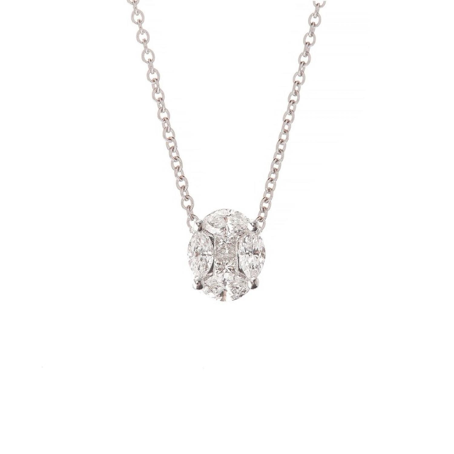 White gold 18 carat necklace with 0,45ct GVVS clarity marquise and princess cut diamonds