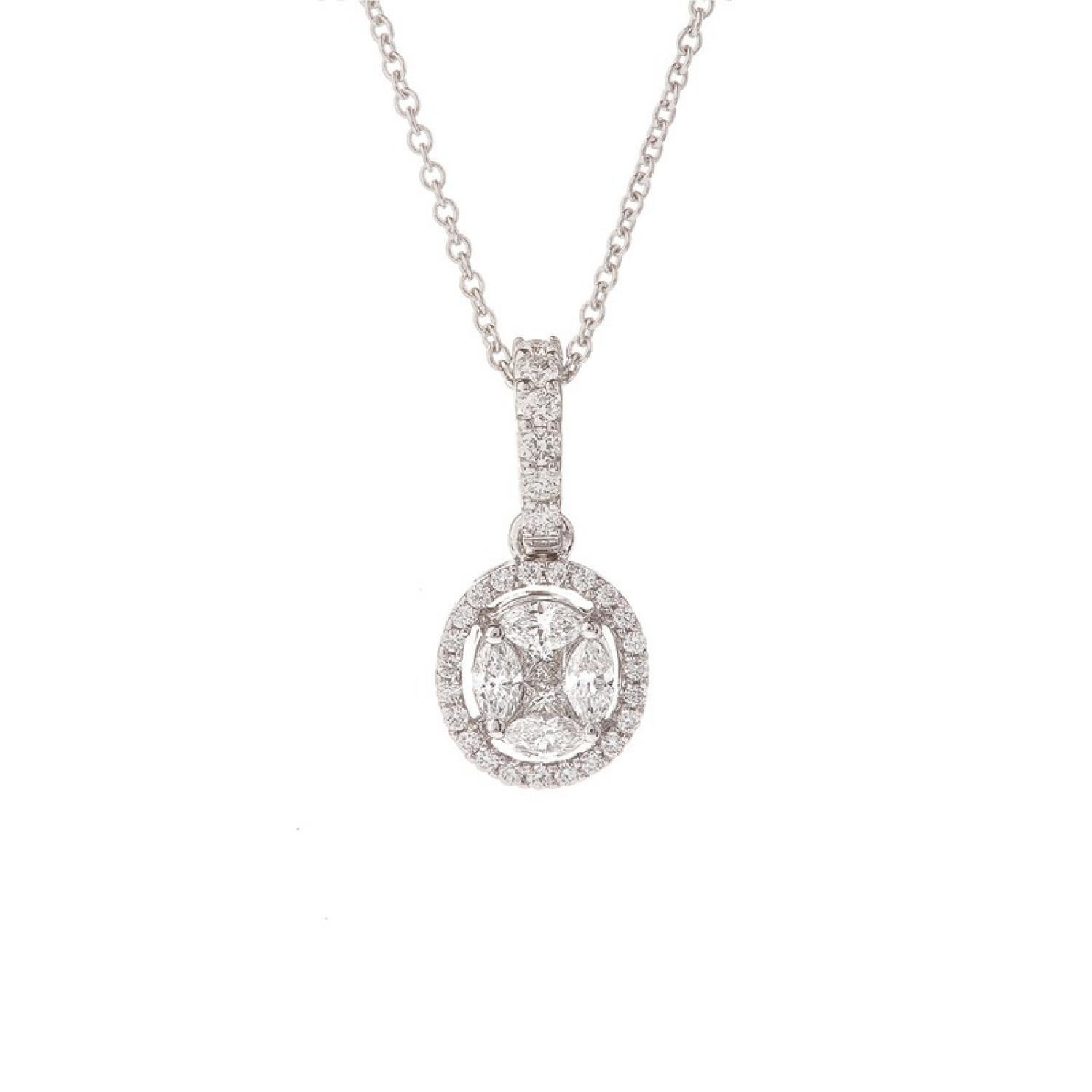 White gold 18 carat pendant with 0,46ct GVVS clarity marquise princess and brilliant cut diamonds