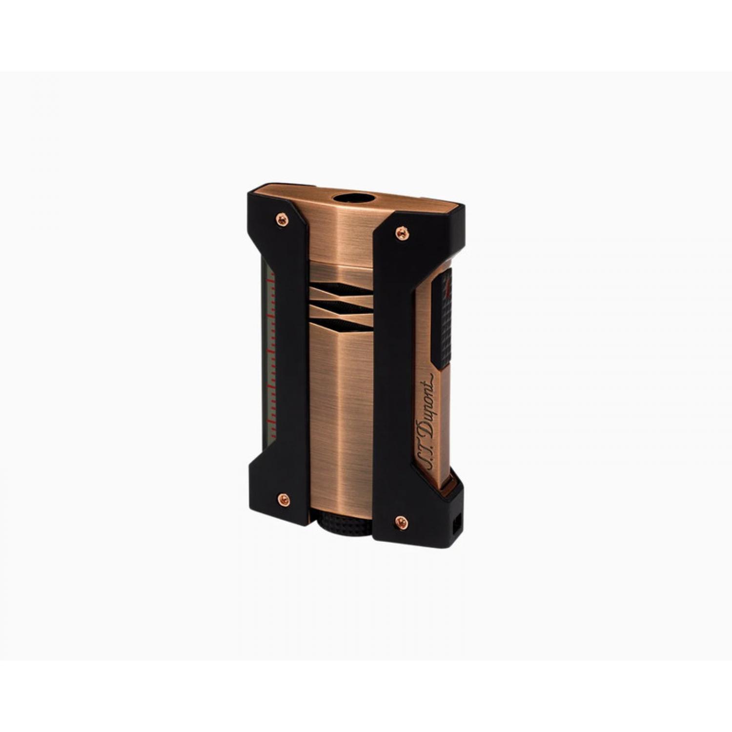 S.T. Dupont has continued to innovate and upgrade with its new, incomparably high-performing lighter, the brushed copper Défi Extrême. Its assertive, dynamic and decidedly masculine design symbolises high performance, and its innovative and unique construction combines a body with high-precision injected metal and a semi rigid jacket for increased protection. Its intuitive ergonomics and its tactile features with the diamond head pattern make Défi Extrême the everyday “object d’art”, under all circumstances. Its powerful and stable blue torch flame resists the most violent winds. Défi Extrême is effective from the coldest temperatures (-10°C) to the hottest (+45°C) and works at a height of more than 3500 m, where other lighters fail to operate.