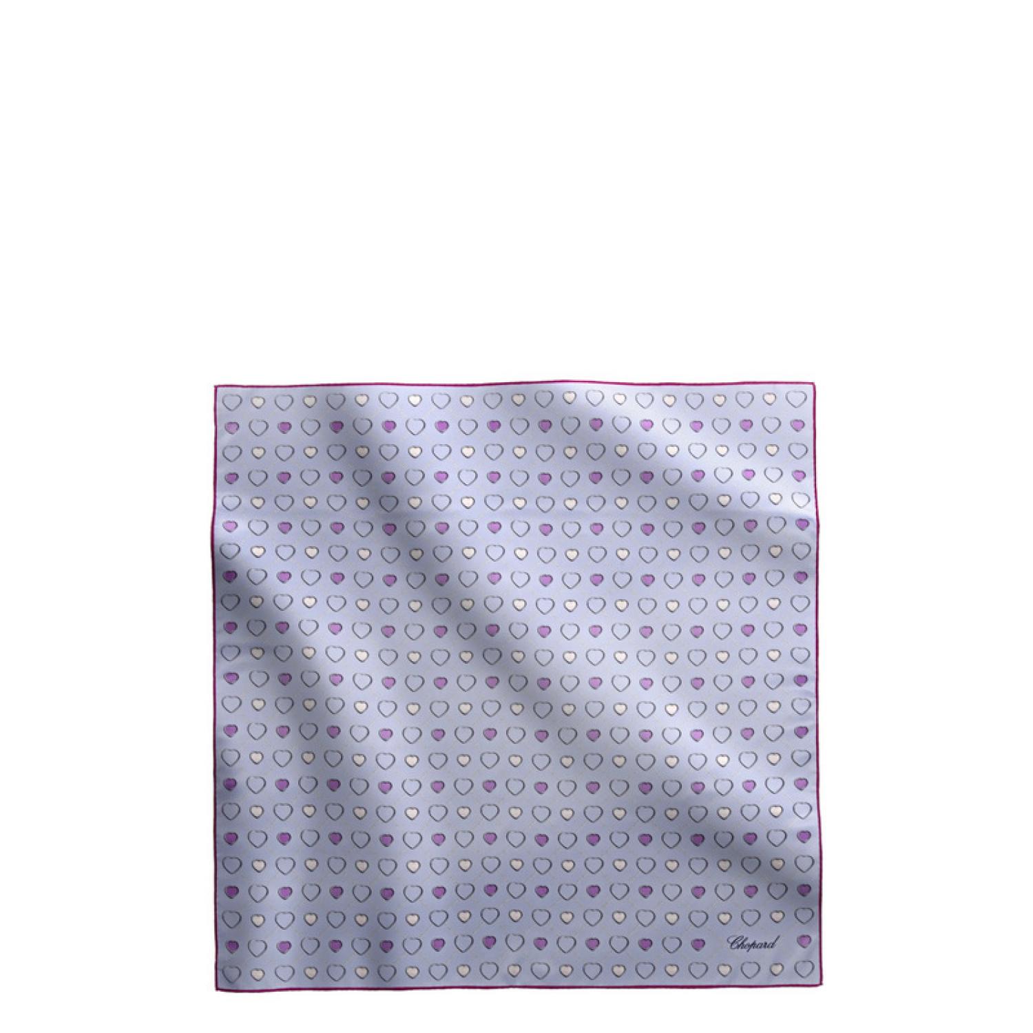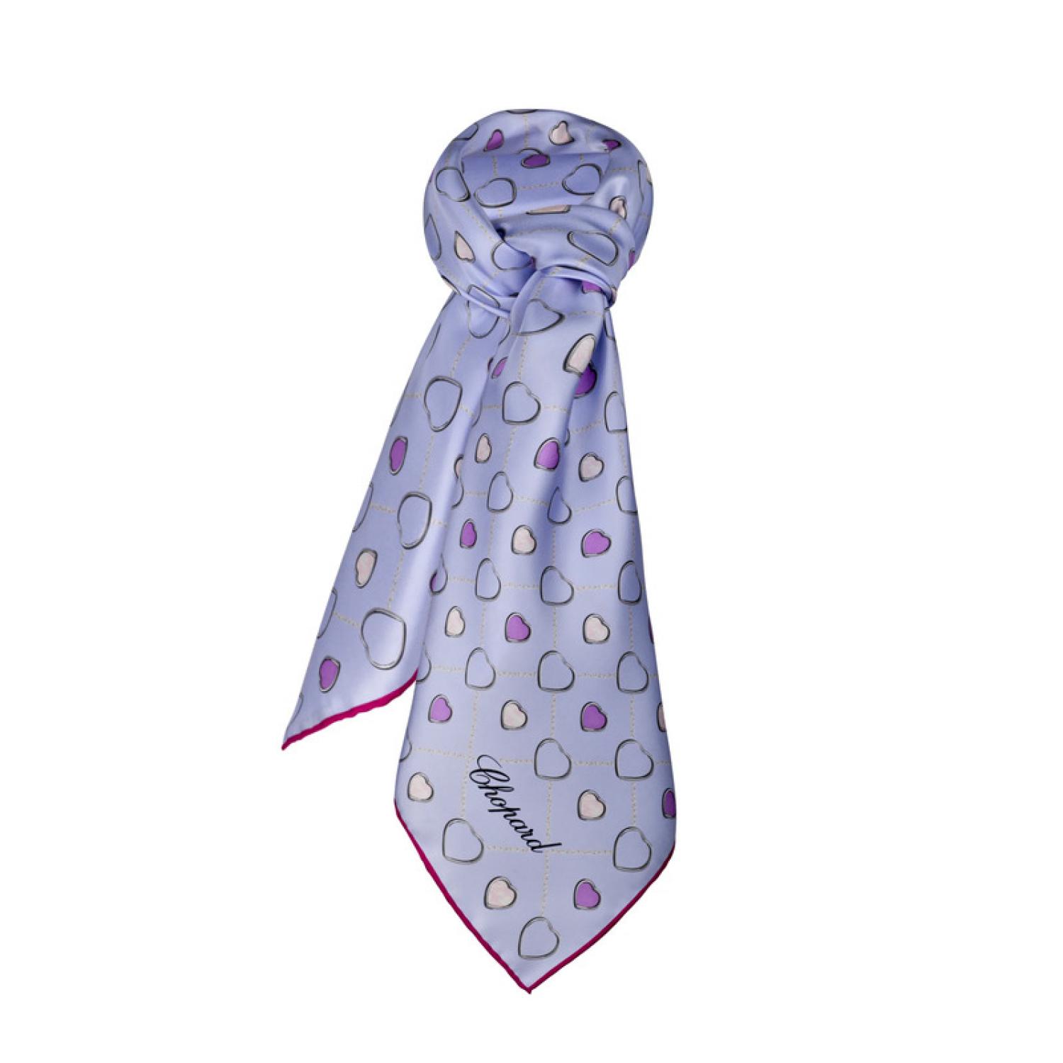 Lovely interwoven hearts adorn this fuchsia-hemmed, sky blue silk twill square which can be tied around the neck, but it will also look great as a hair accessory, worn as a headband. A chic, timeless scarf that your wardrobe cannot do without.