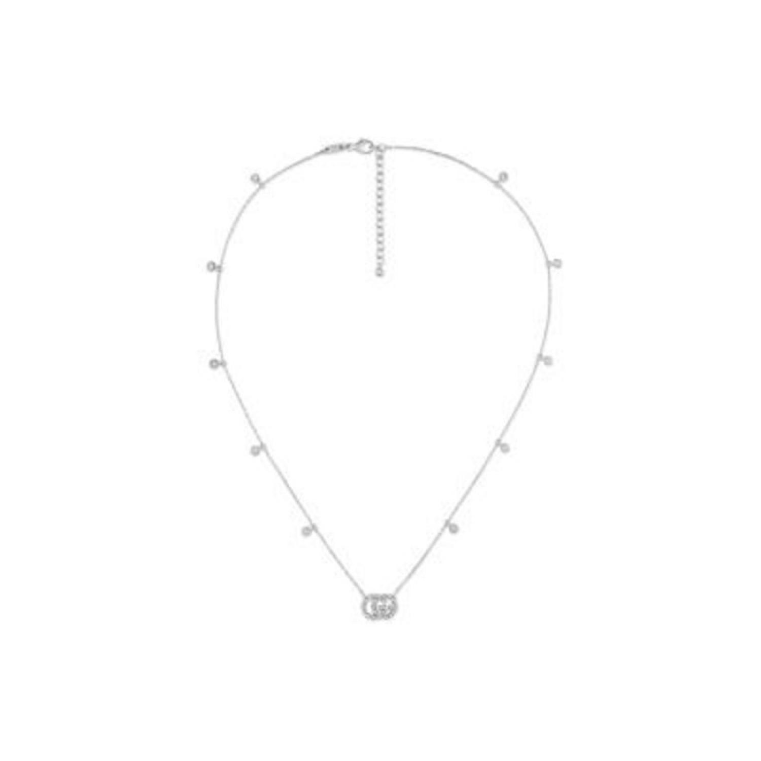 Clean lines with an elegant feel, this 18k white gold GG Running necklace, encrusted with diamonds, adds a classic touch to the fine jewelry collection. Formed by the initials of the House's Founder Guccio Gucci, the distinctive code pays homage to the brand's heritage.