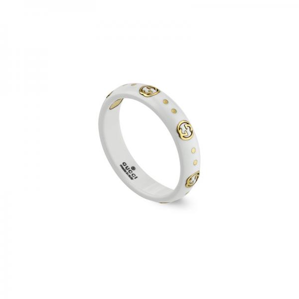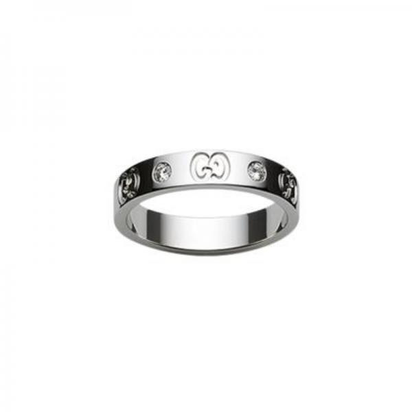 The latest silhouettes for the Icon line offer new refined and contemporary executions of signature pieces. Intricate engraved details offer a magical touch, such as the heart motif that continues to appear as a beloved symbol of the House alongside the emblematic GG motif. Here a precious white diamond enriches this 18ct yellow gold ring.