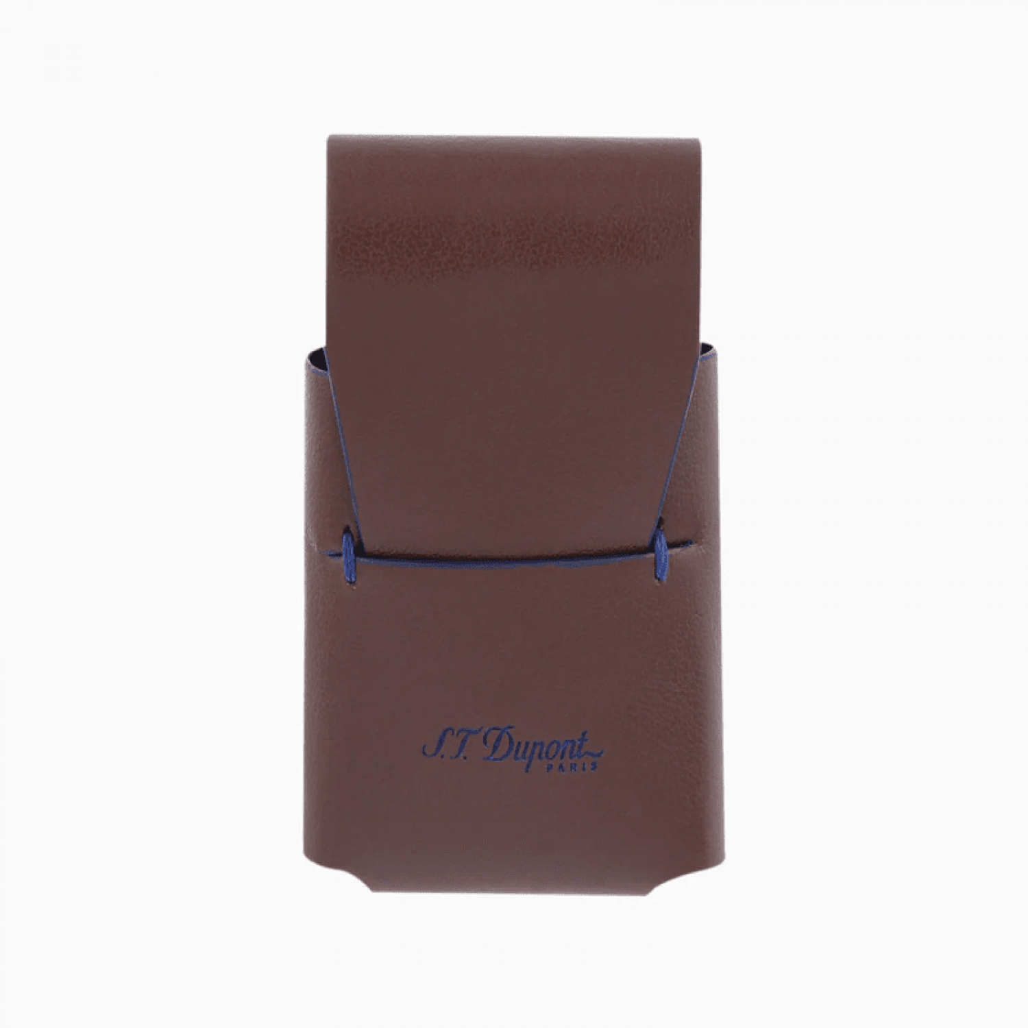 Line 2 lighter case made of cow hide leather brown exterior and blue interior with small blue stitchings which are the signature of the Line D Slim together with the blue embossing for external and internal logo.
