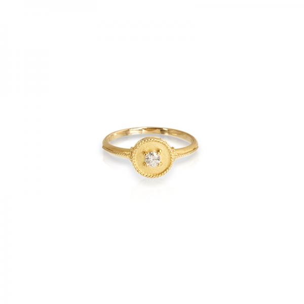 Round stud earrings in 18k yellow gold and diamonds.