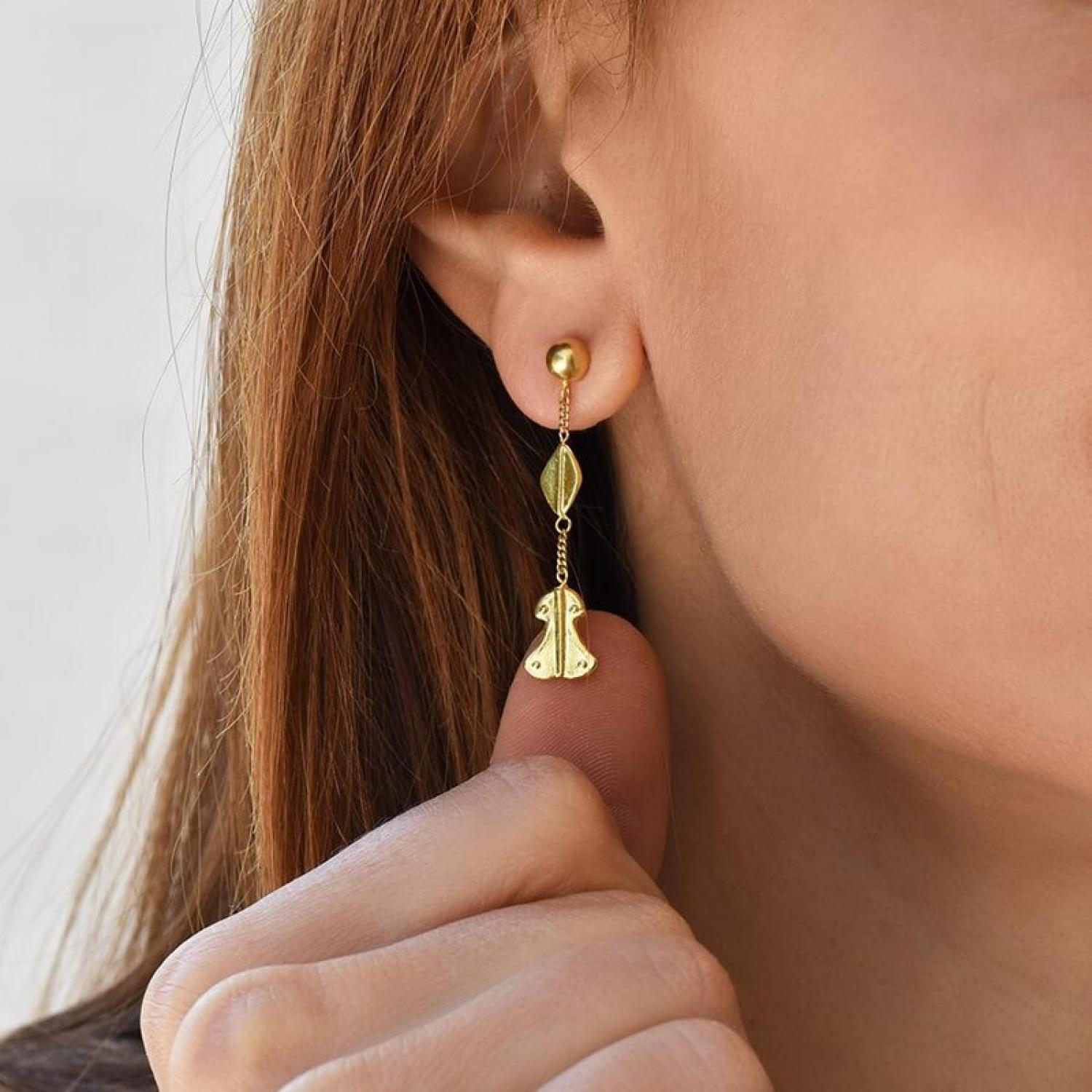 Single strand earrings in 18k gold.