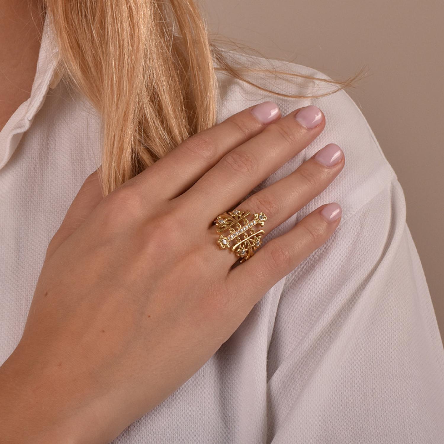 Articulated ring in 18k yellow gold and diamonds.