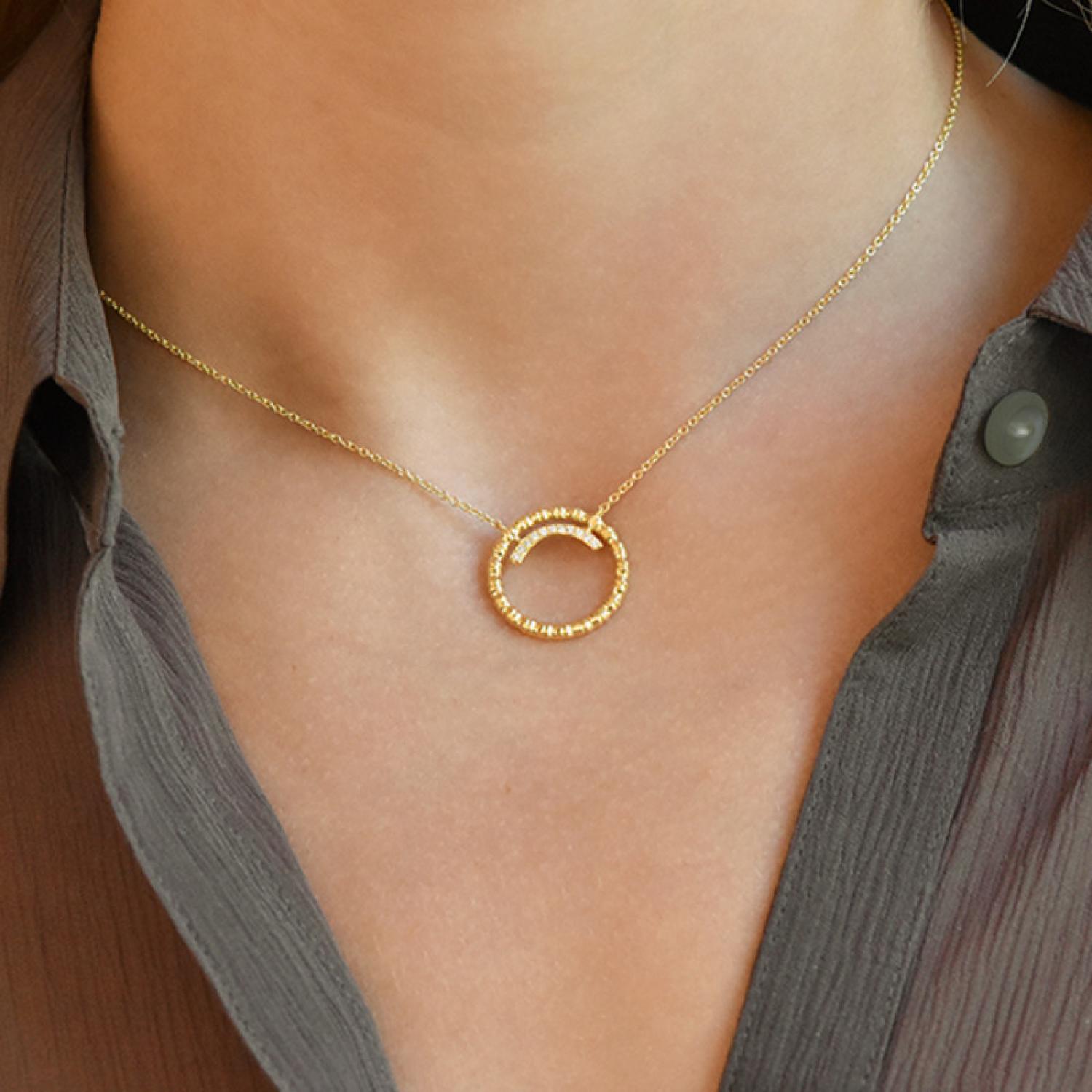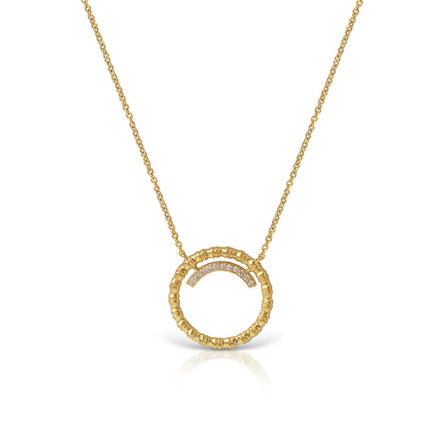 Necklace in 18k textured gold and diamonds