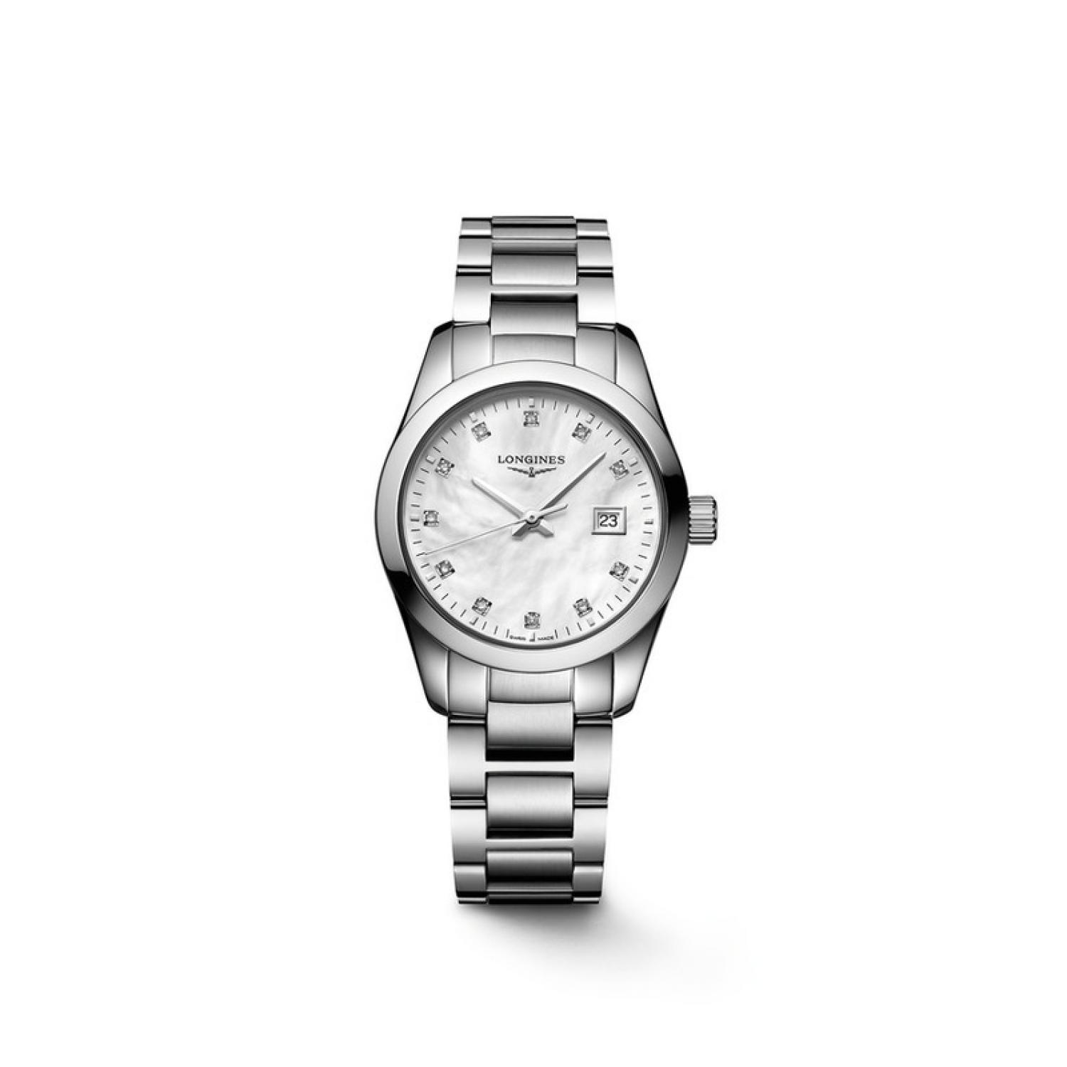 Longines Conquest is the quintessential expression of the brand’s sporting elegance. Special attention went into the aesthetics of the bezel, the cabochon crown and the links. A subtle blend of performance and elegance, the Longines Conquest includes technical features that meet the requirements of the most demanding sportsmen and women. Both sober and sophisticated, these models are guaranteed to catch the eye at the most fashionable soirées as well as in the stands of prestigious horse races.