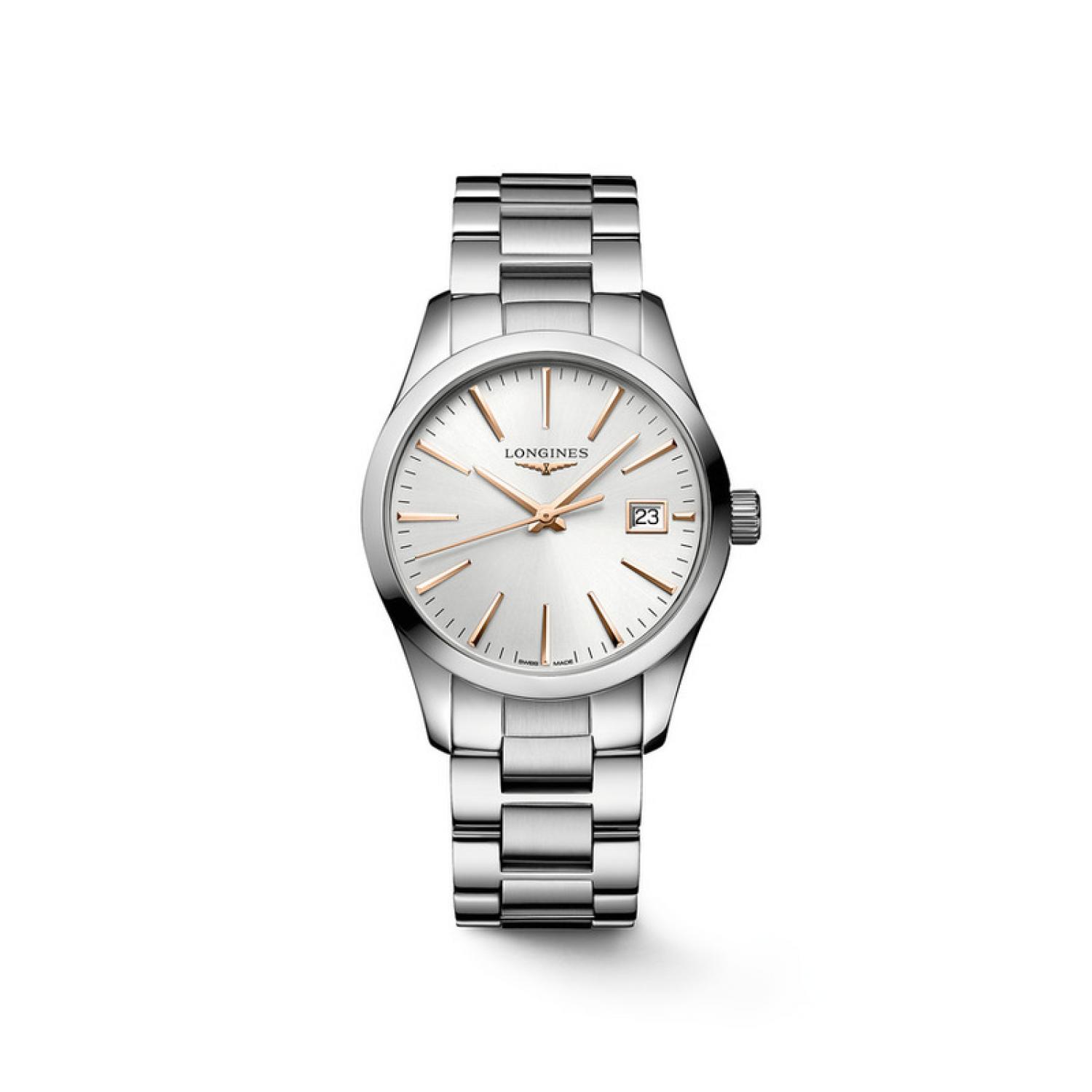 Longines Conquest is the quintessential expression of the brand’s sporting elegance. Special attention went into the aesthetics of the bezel, the cabochon crown and the links. A subtle blend of performance and elegance, the Longines Conquest includes technical features that meet the requirements of the most demanding sportsmen and women. Both sober and sophisticated, these models are guaranteed to catch the eye at the most fashionable soirées as well as in the stands of prestigious horse races.