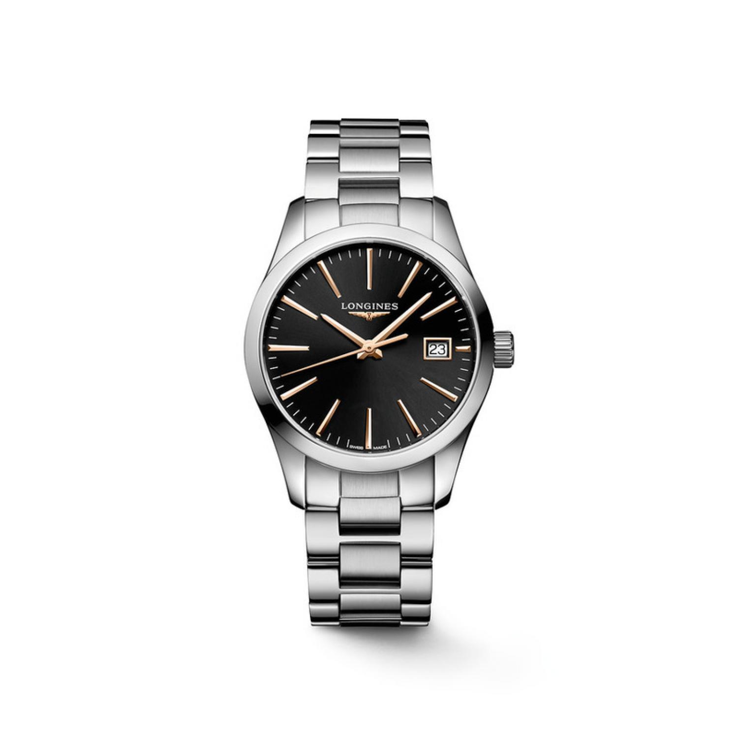 Longines Conquest is the quintessential expression of the brand’s sporting elegance. Special attention went into the aesthetics of the bezel, the cabochon crown and the links. A subtle blend of performance and elegance, the Longines Conquest includes technical features that meet the requirements of the most demanding sportsmen and women. Both sober and sophisticated, these models are guaranteed to catch the eye at the most fashionable soirées as well as in the stands of prestigious horse races.