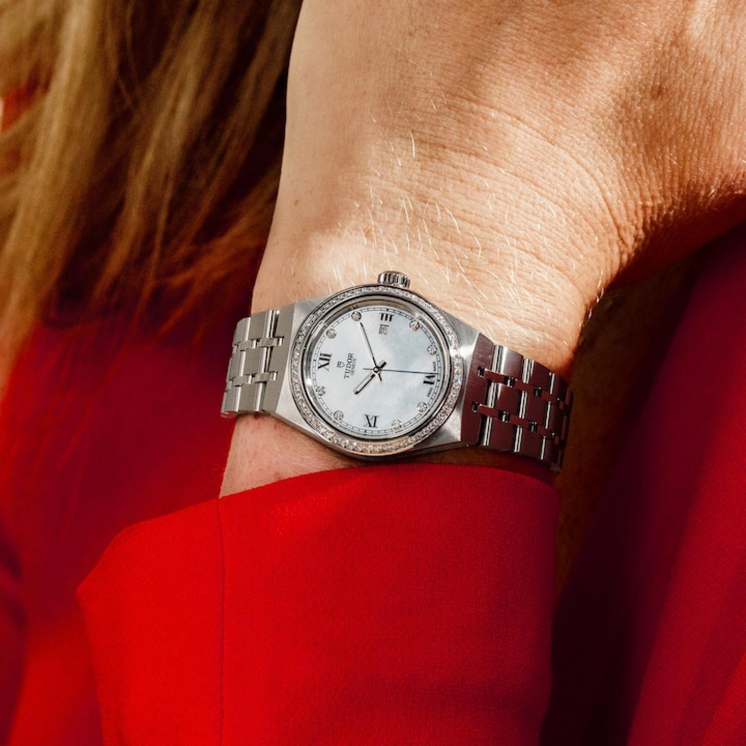 Steel screw-down winding crown with the TUDOR logo