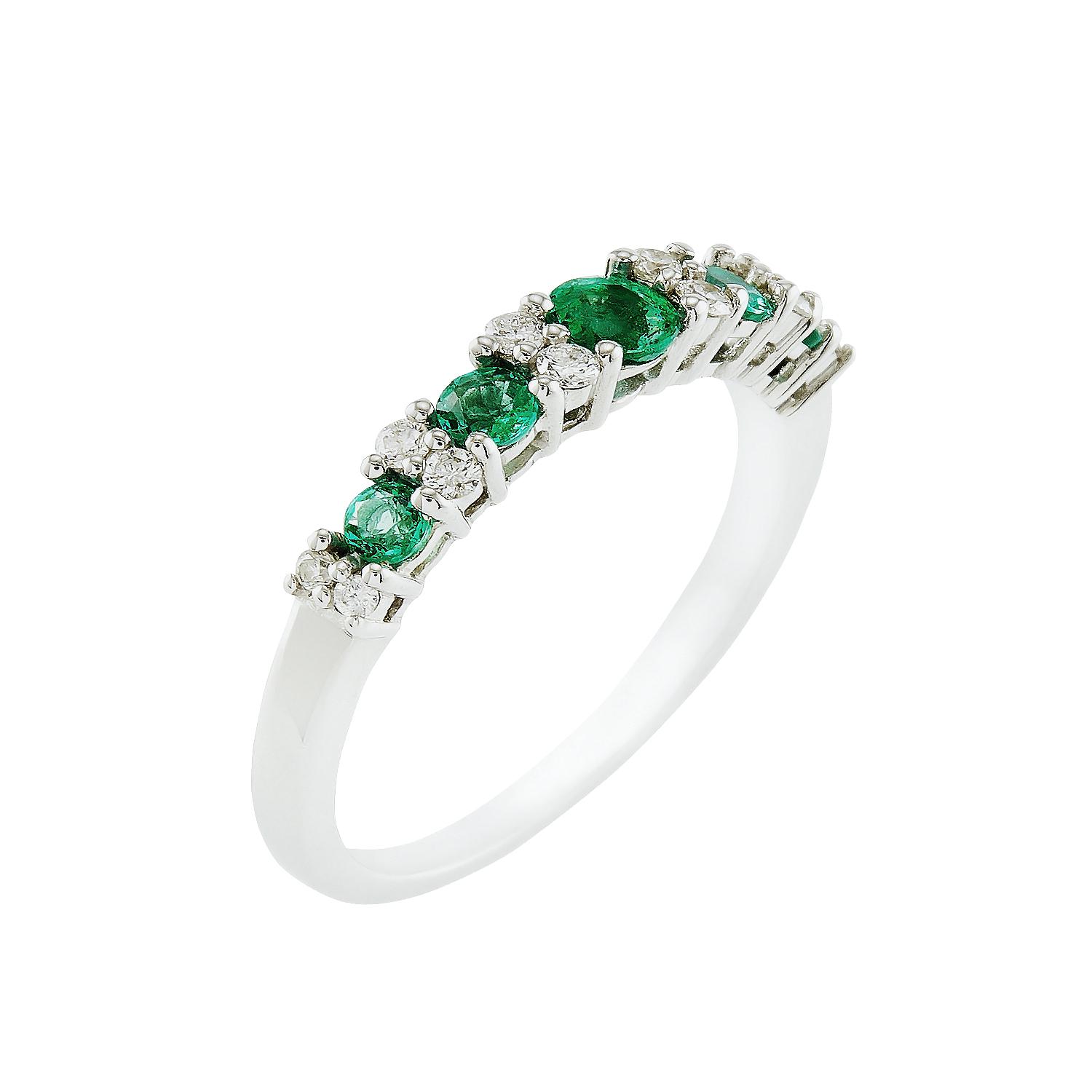 Half eternity ring with emeralds and diamonds.