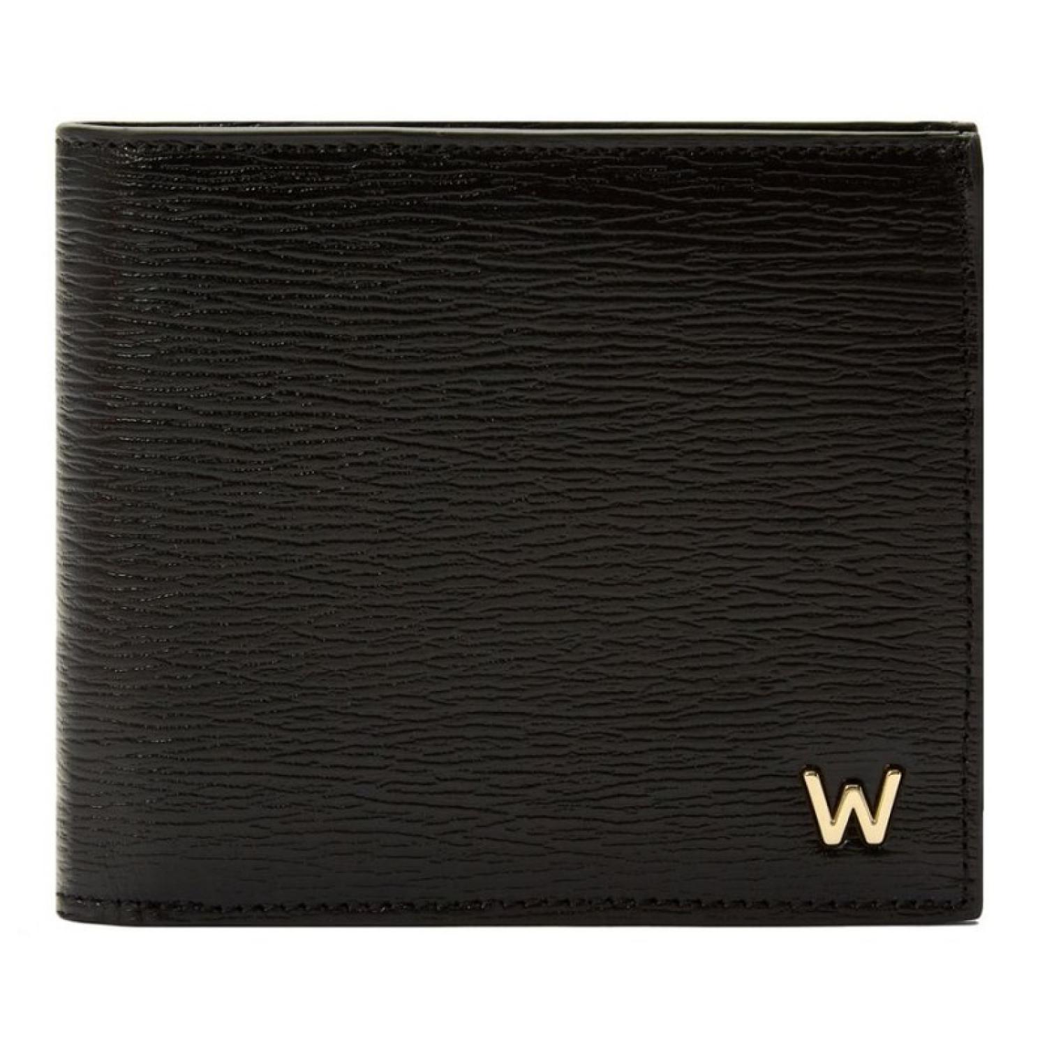The ‘W’ collection; sleek, black, embossed grain leather, with touches of gold across leather wallets, business accessories and a dopp kit. Pure sophistication comes from classic design with WOLF’s trademark attention to detail. The W Logo Billfold & Coin is made from sustainably sourced embossed cow leather, and lining made from recycled plastic bottles. Containing 4 credit card slots, a large compartment for notes, magnetic pouch for coins and RFID protection to keep your personal data safe.