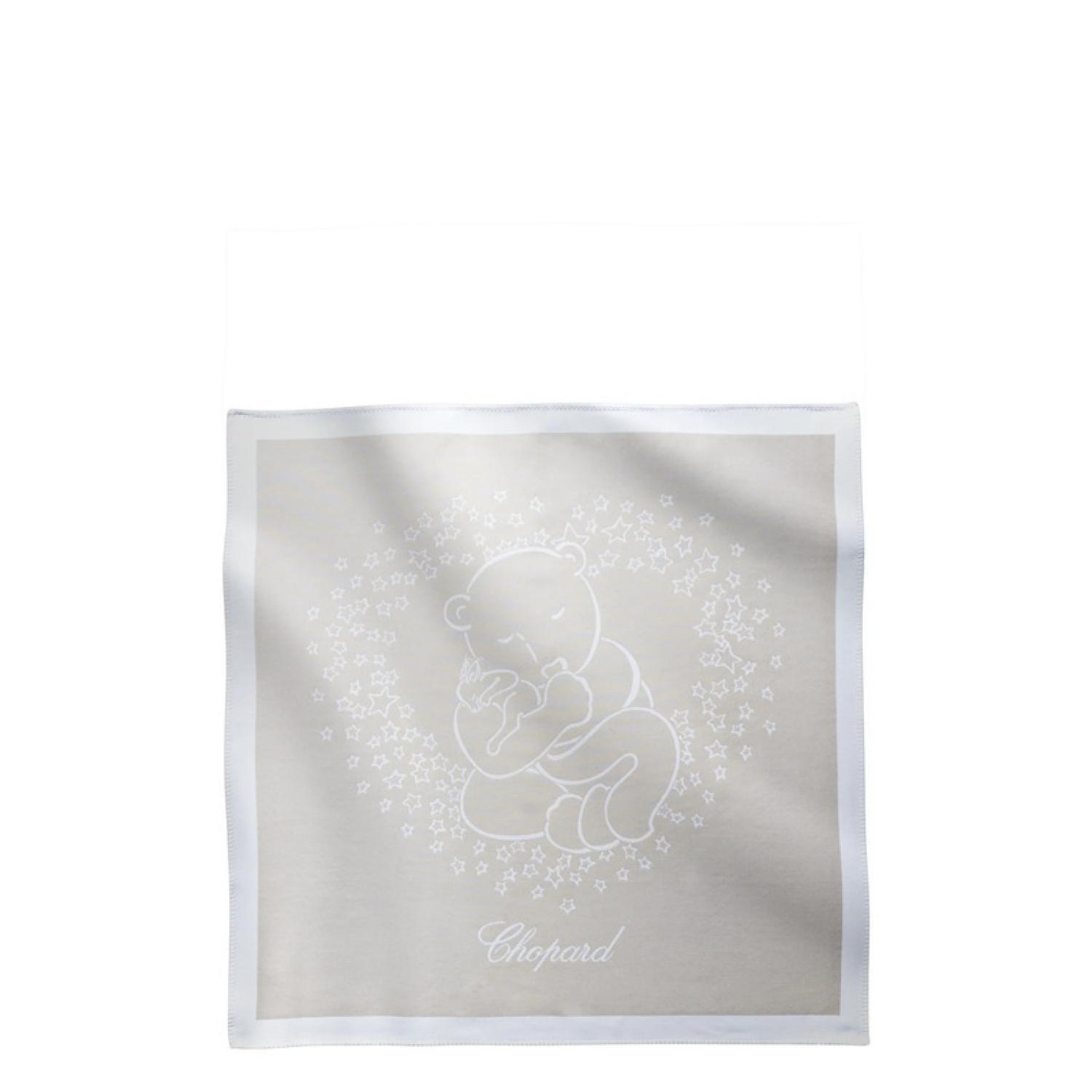 Arty, Chopard's star bear cub, is captured here in the most adorable way. Surrounded by a halo of stars in the shape of a heart, he sleeps soundly, with his friend the squirrel snuggled up to him. This large and soft beige blanket in organic cotton will inspire sweet dreams for baby.