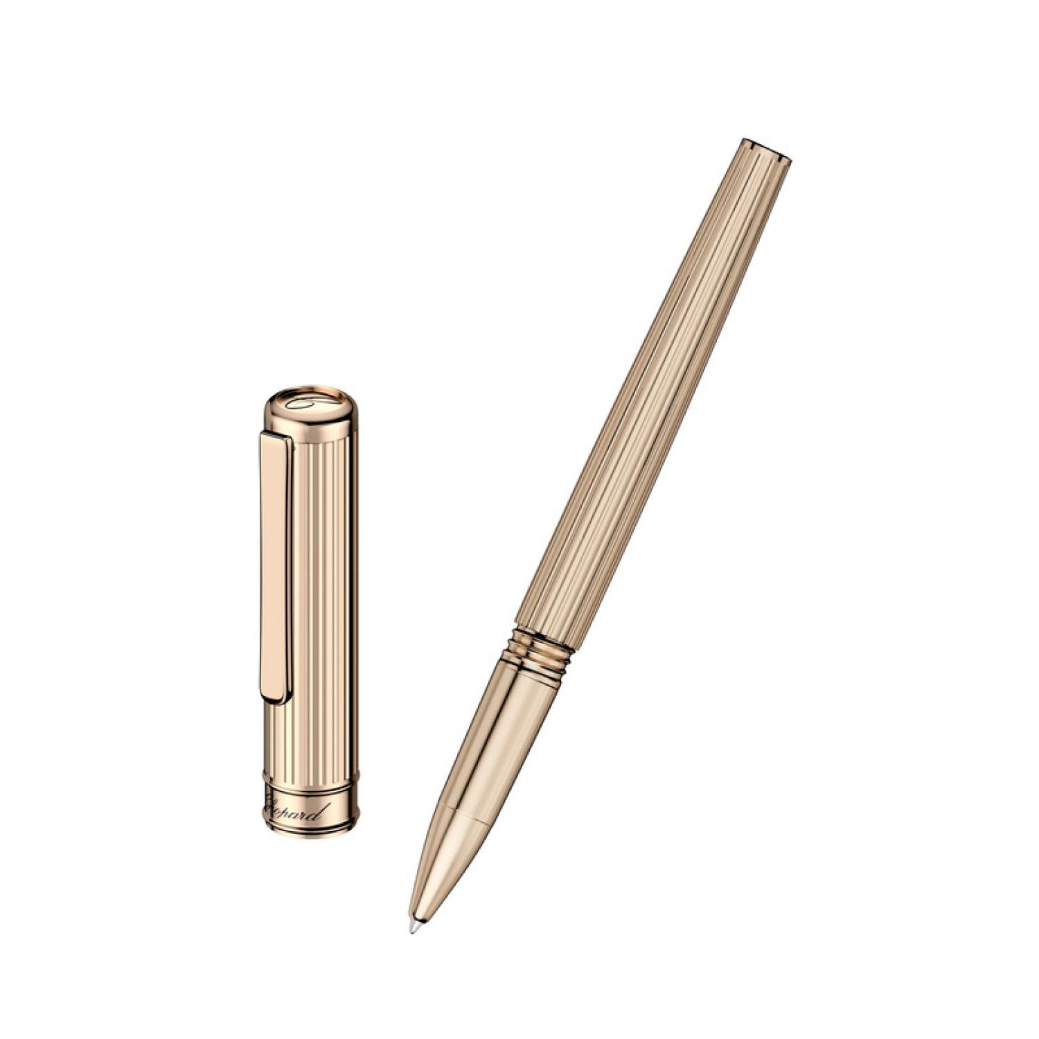 Slim, sleek features adorn this elegant rose gold-toned metal rollerball pen. Its radiantly minimalist design distills trust and rigor. Pleasant to handle for precision writing, this daily companion will never fail you.