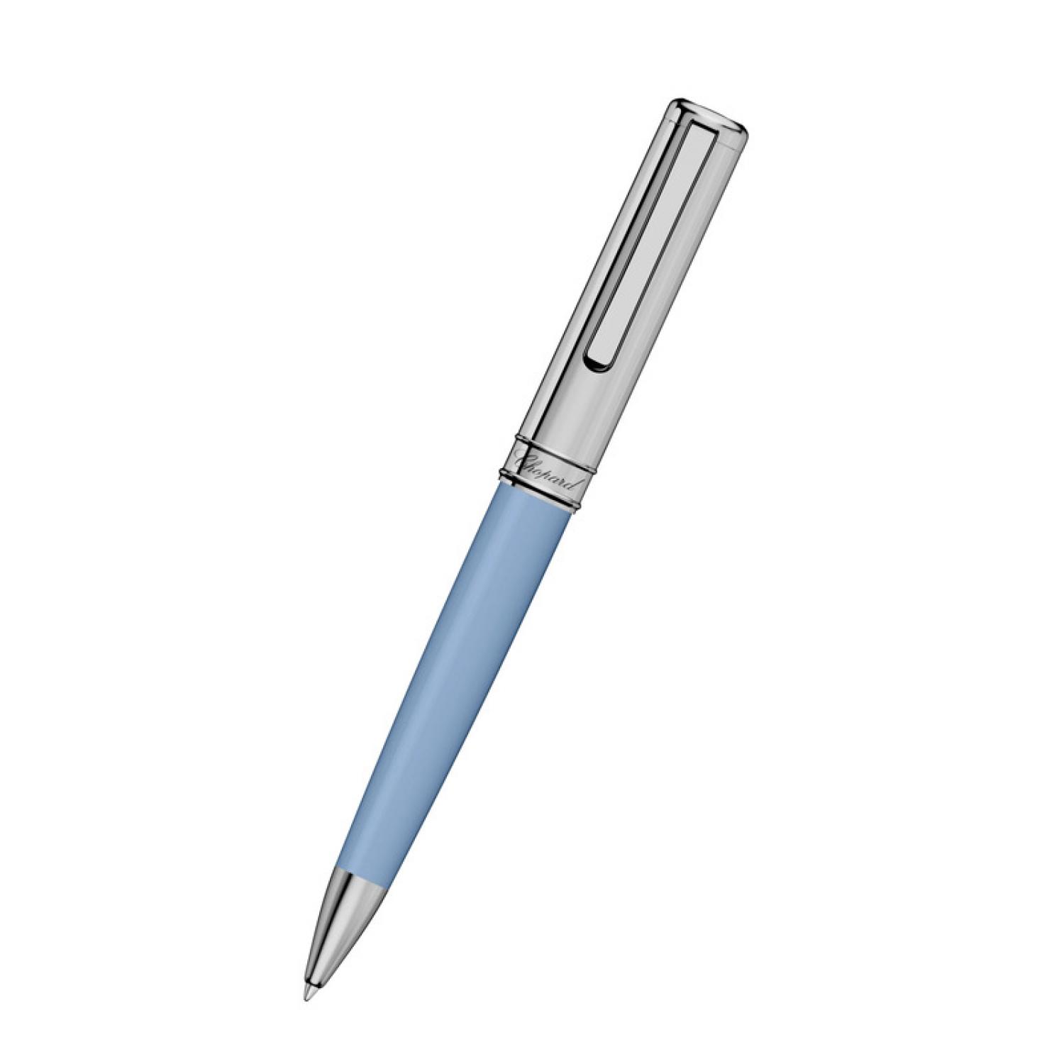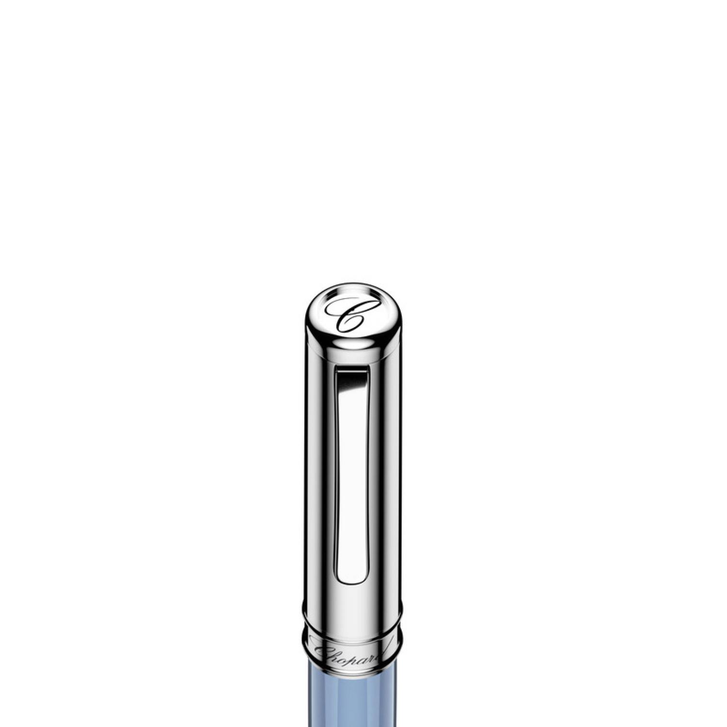 A refined design and precious materials make this elegant ballpoint pen the writer’s most reliable tool. Enhanced with delicate silver-toned metal detailing, the light blue resin barrel gives this remarkable instrument timeless elegance.