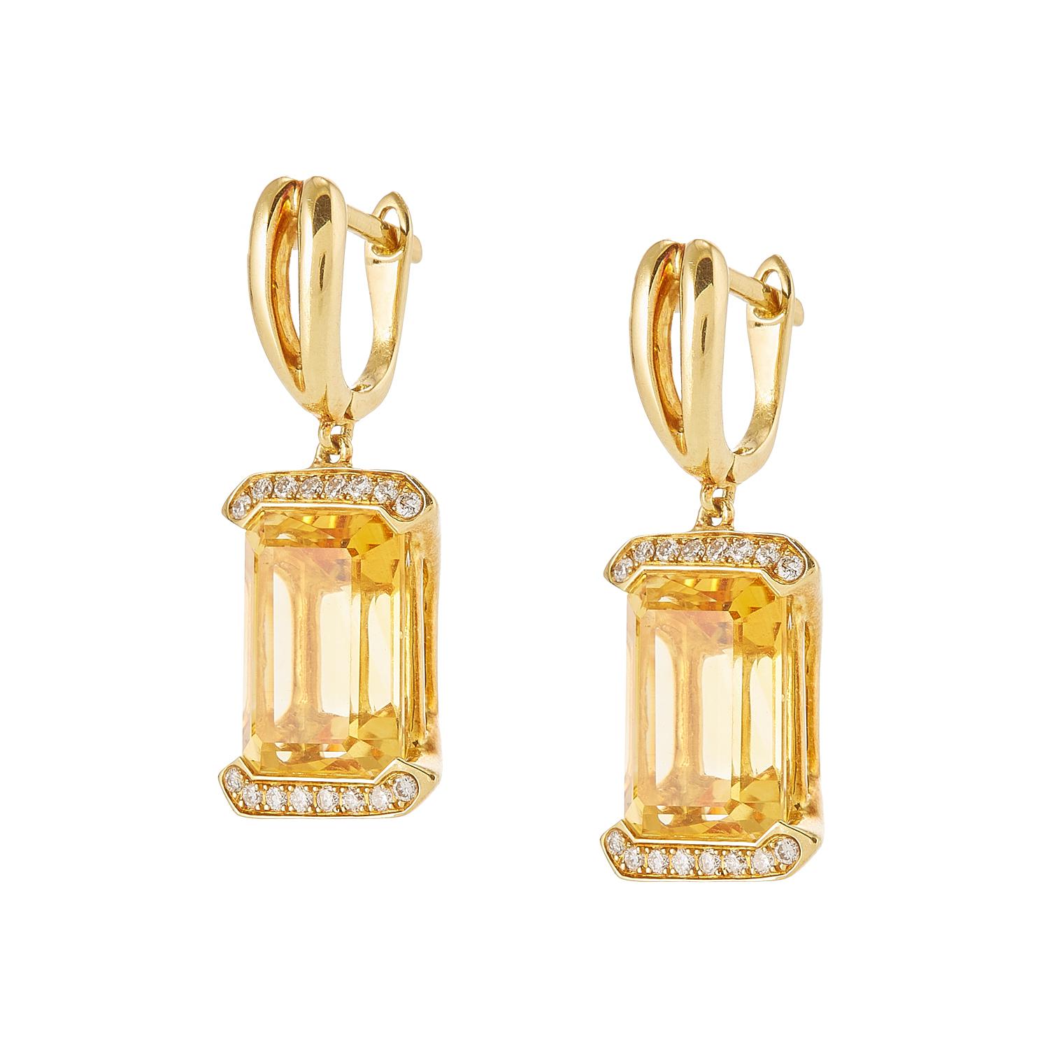 Dangling earrings with diamonds and yellow citrine stone.
