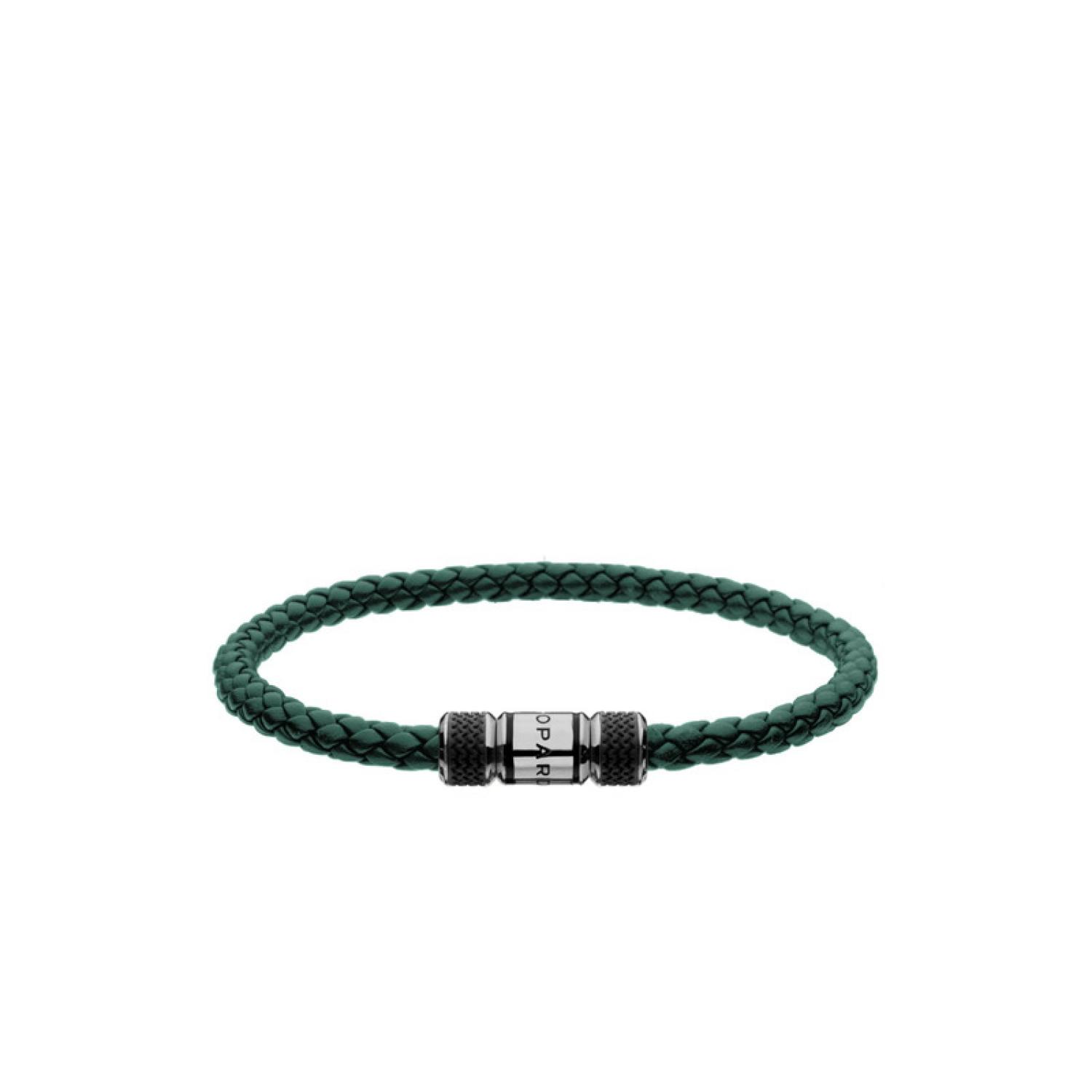 Elegantly encasing the wrist of the gentleman driver, the Classic Racing bracelet in braided green leather with silvered finishes is distinctive for its minimalist style and subtle, timeless luxury. A symbol of the Racing line, the famous Dunlop tyre chevron pattern of the 1960s appears on the designer clasp for an inimitable sport chic allure.