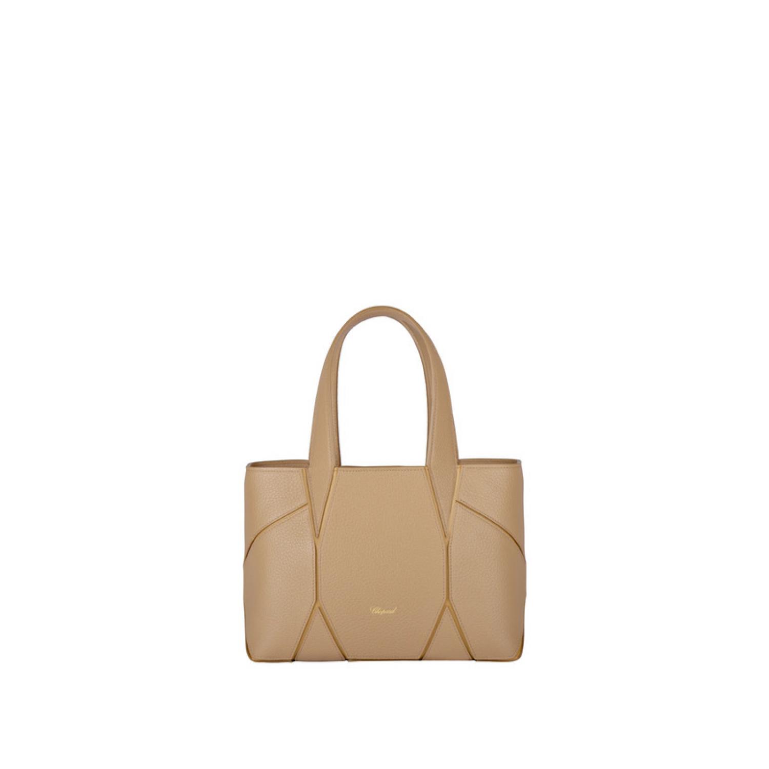 The Diamond Tote leather mini bag has elegant lines in camel grained calf leather with delicate stitching that evokes the facets of a diamond. Featuring a zip fastening and an inside pocket, it has plenty of room for your everyday essentials. This luxury women's bag can be hand-held or worn over the shoulder thanks to a wide, detachable and adjustable leather shoulder strap embossed with the iconic Chopard logo.