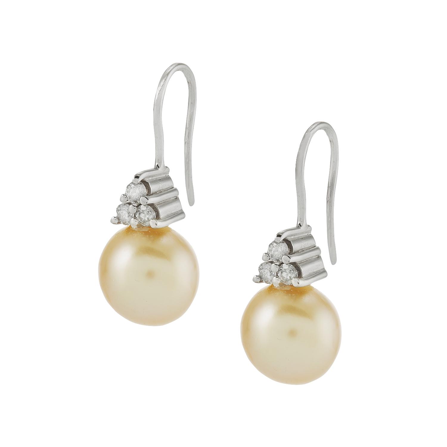 Dangling earrings with diamonds and South Sea Pearls in luxury size.