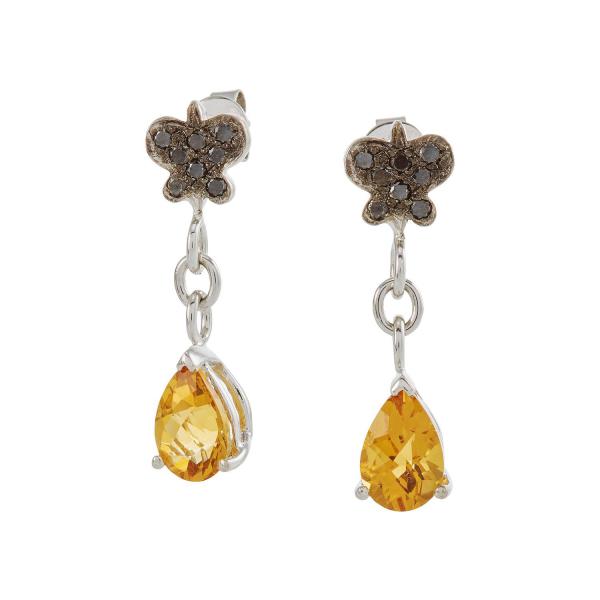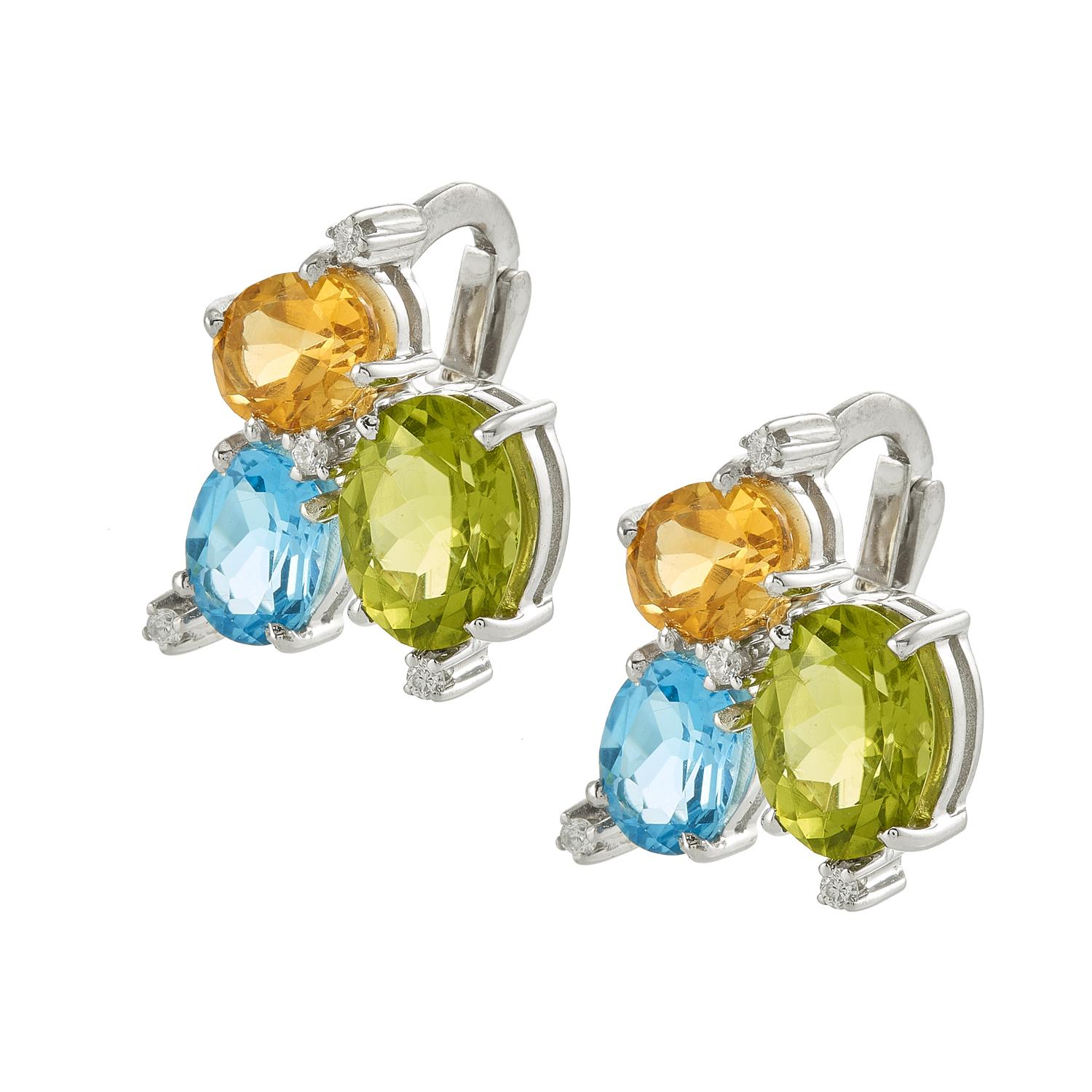 Colourful earrings with citrine, blue topaz, peridot and diamonds.