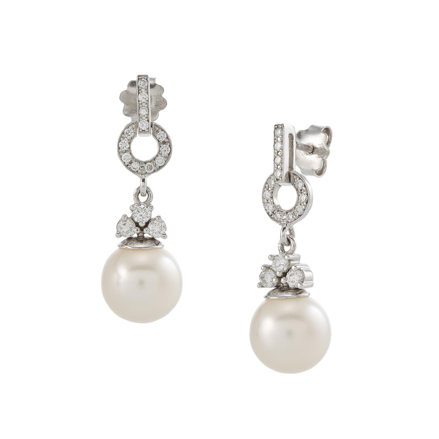 Dangling earrings with diamonds and luxury size pearls.
