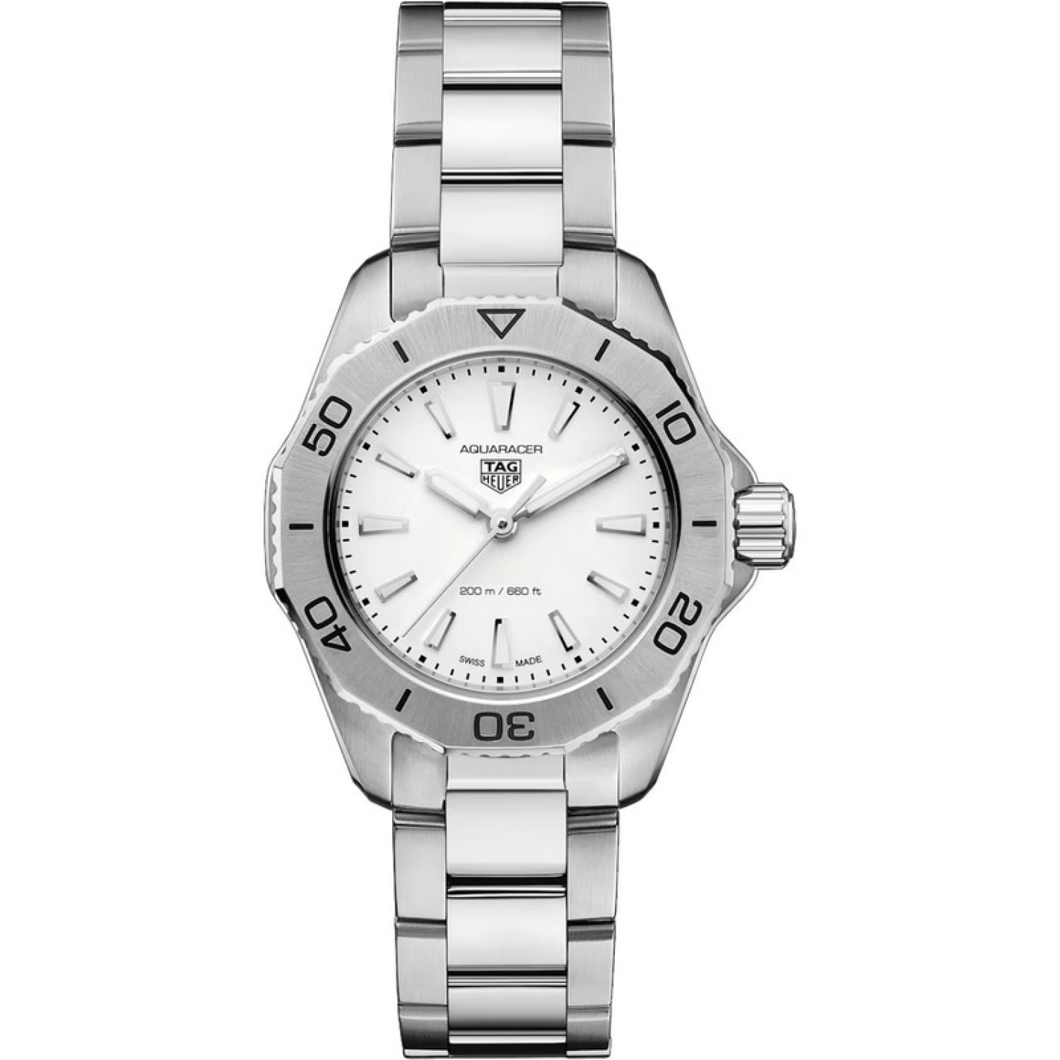 Showing elegant finishes, the 30mm stainless steel case of this TAG Heuer Aquaracer offers optimised ergonomics and water resistance to 200M.
