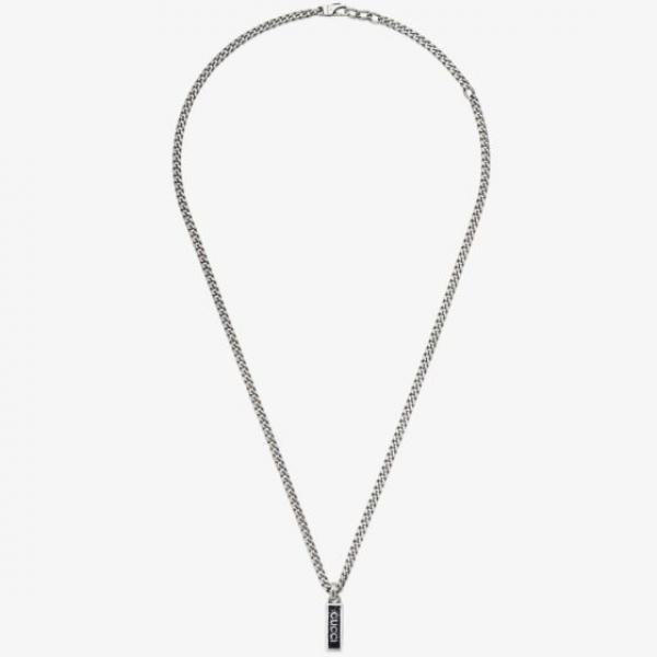 GUCCI Silver & Black Enamel Tag Necklace